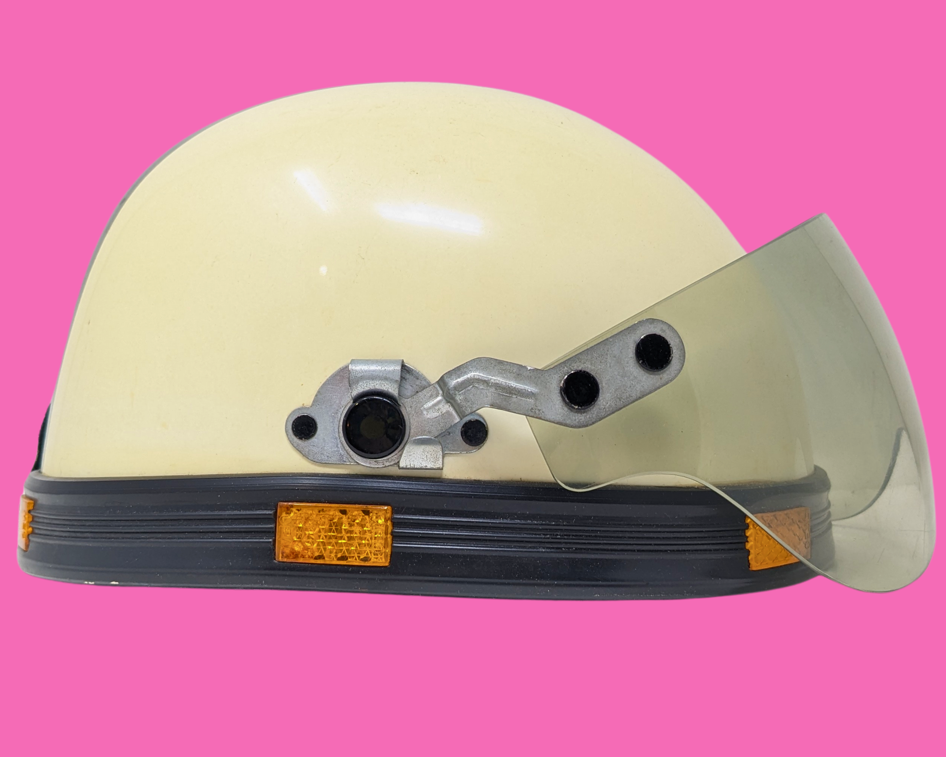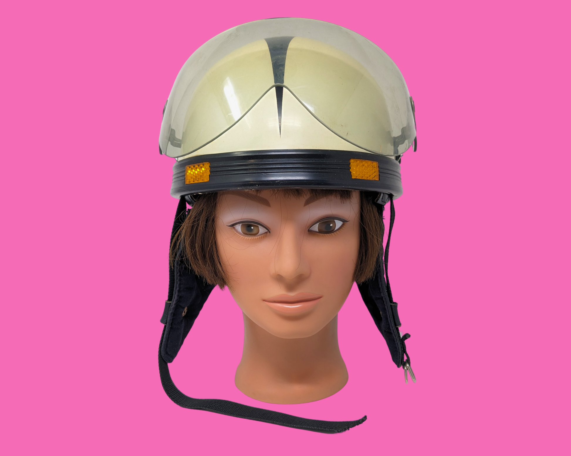Casque de moto vintage noir et blanc des années 1970, fabriqué au Japon