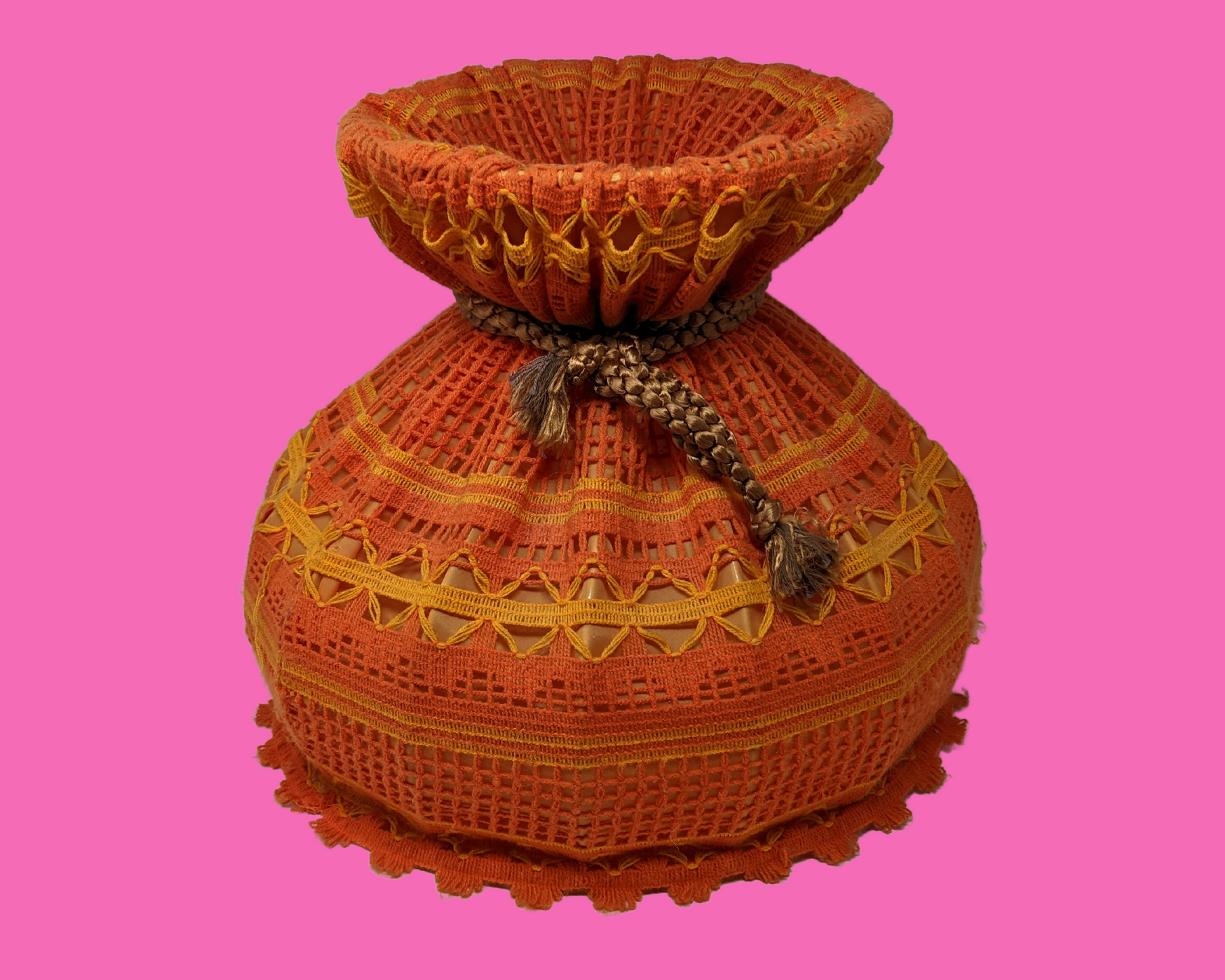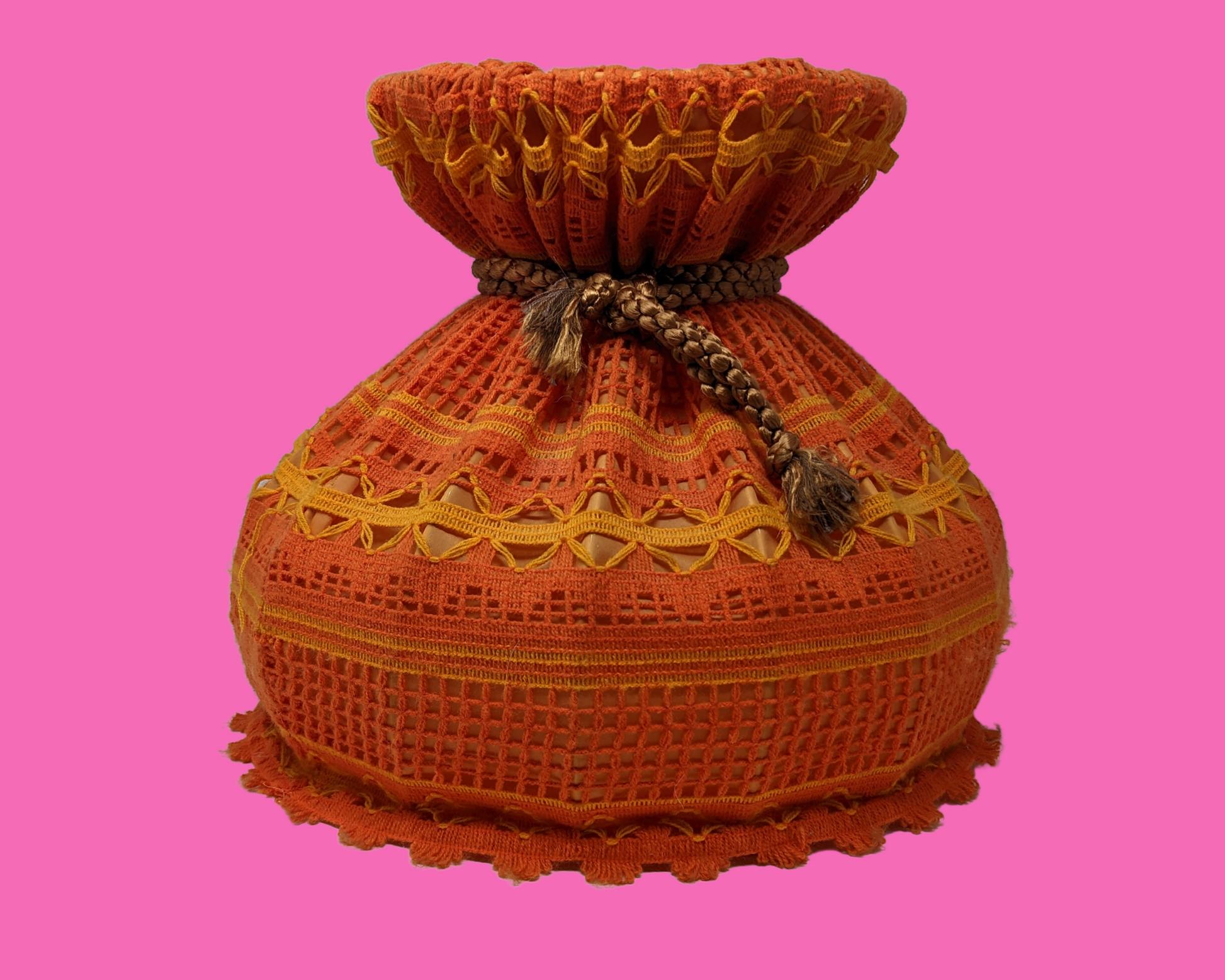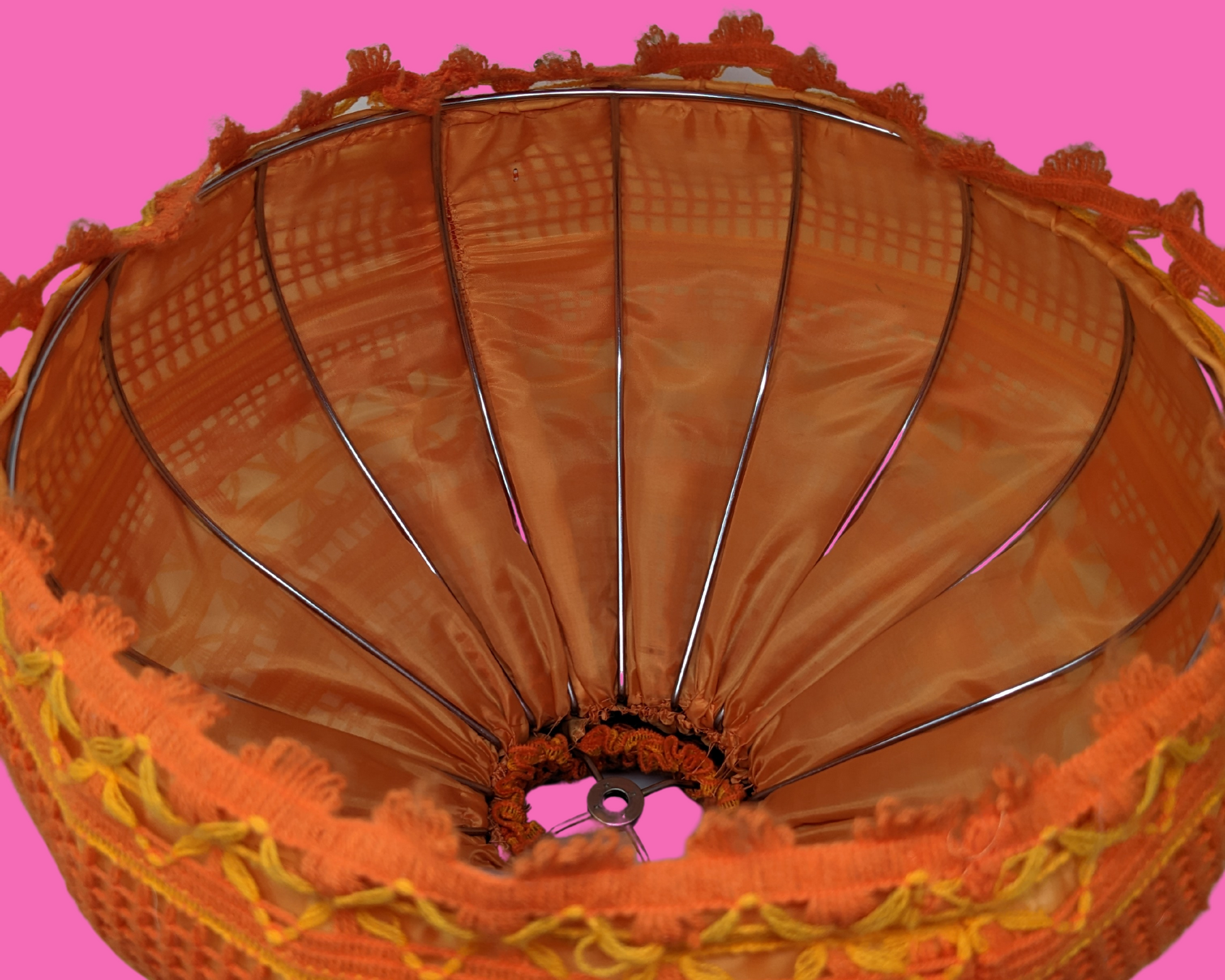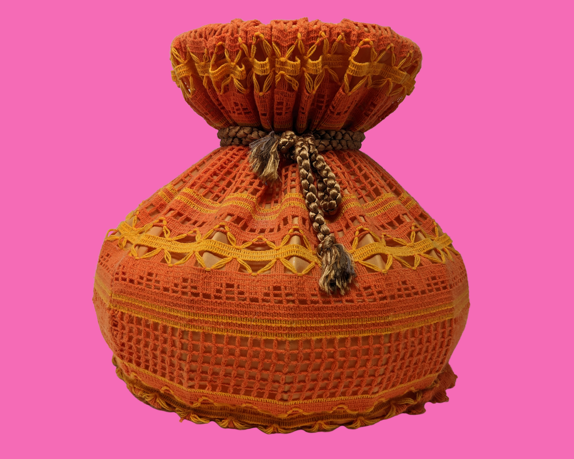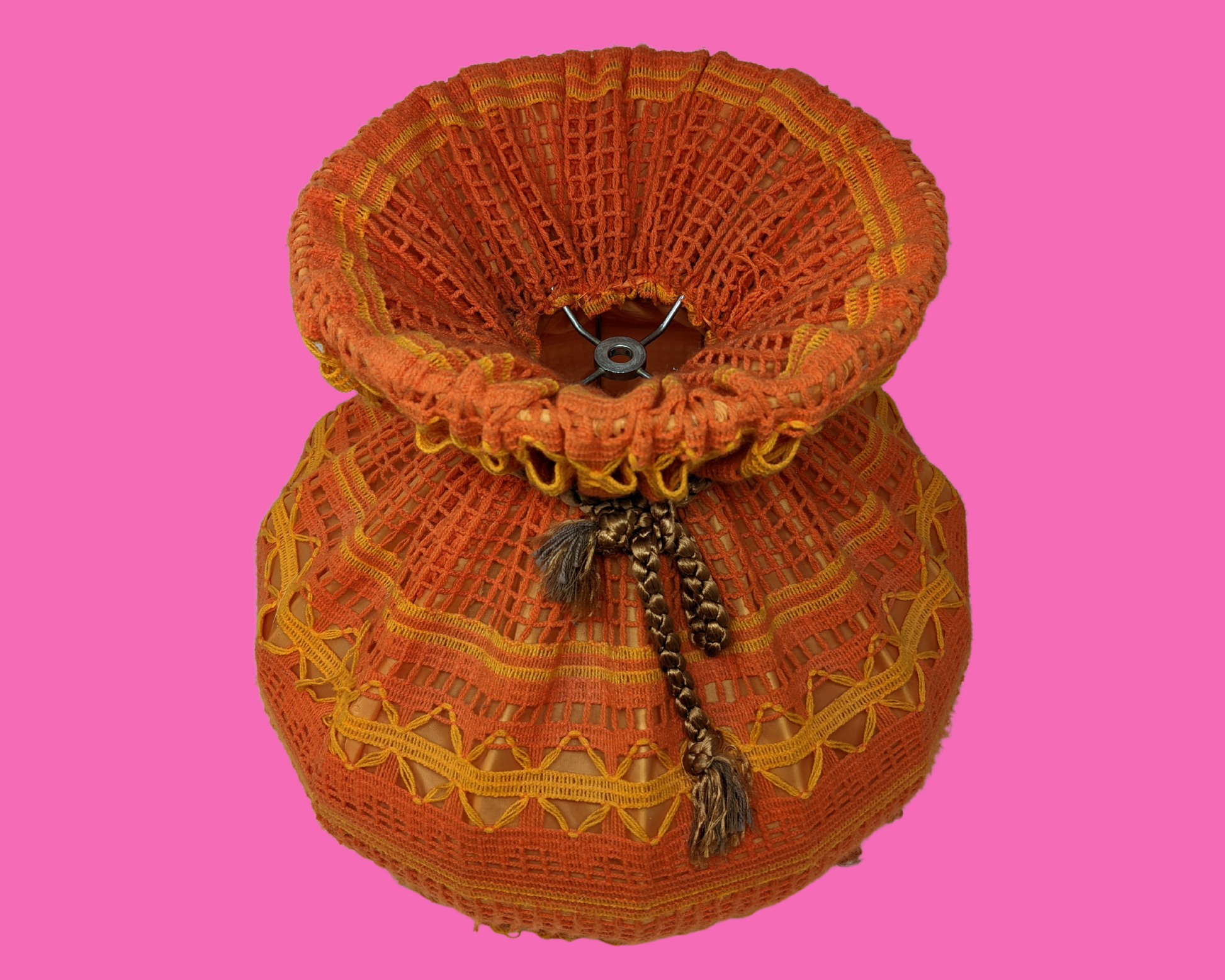 • Abat-jour en laine orange vintage des années 1970, crochet, macramé