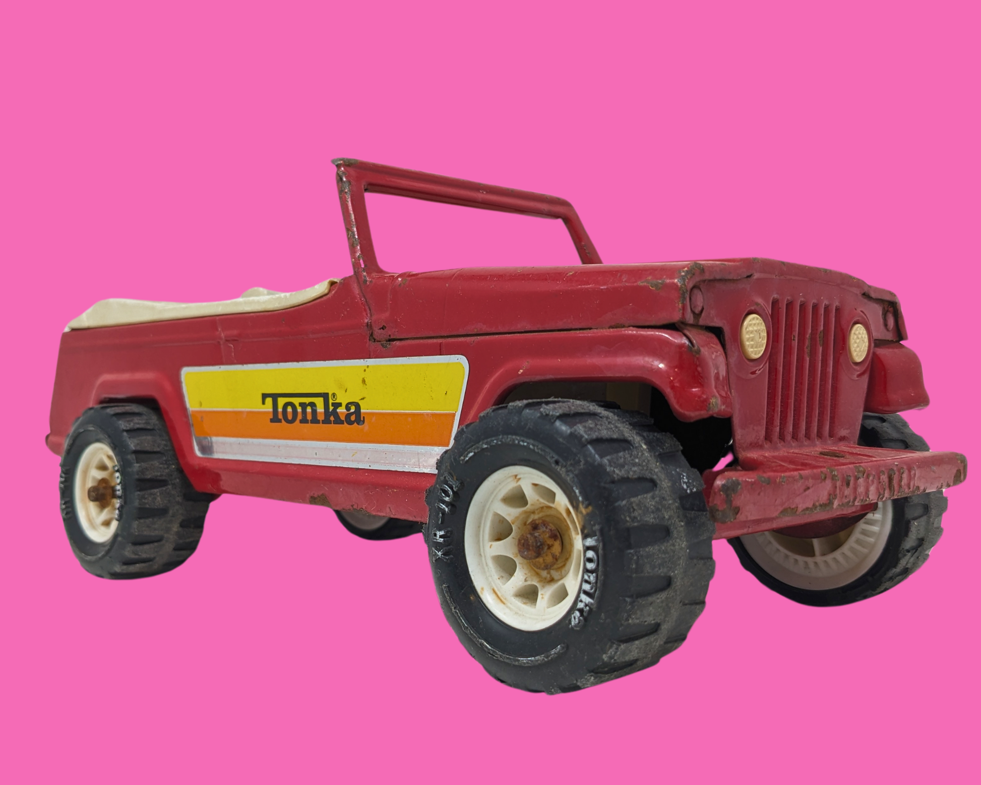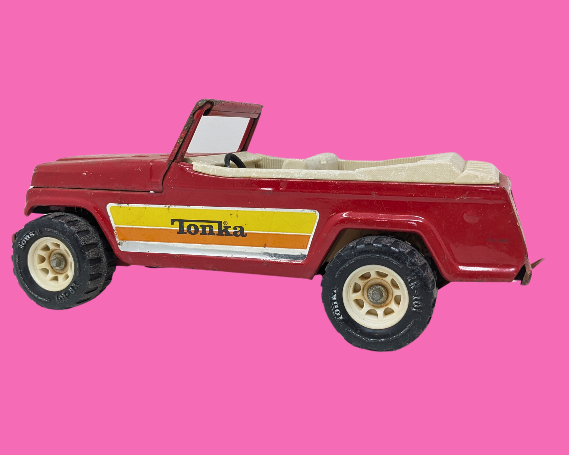 • Voiture Tonka décapotable rouge vintage des années 1970