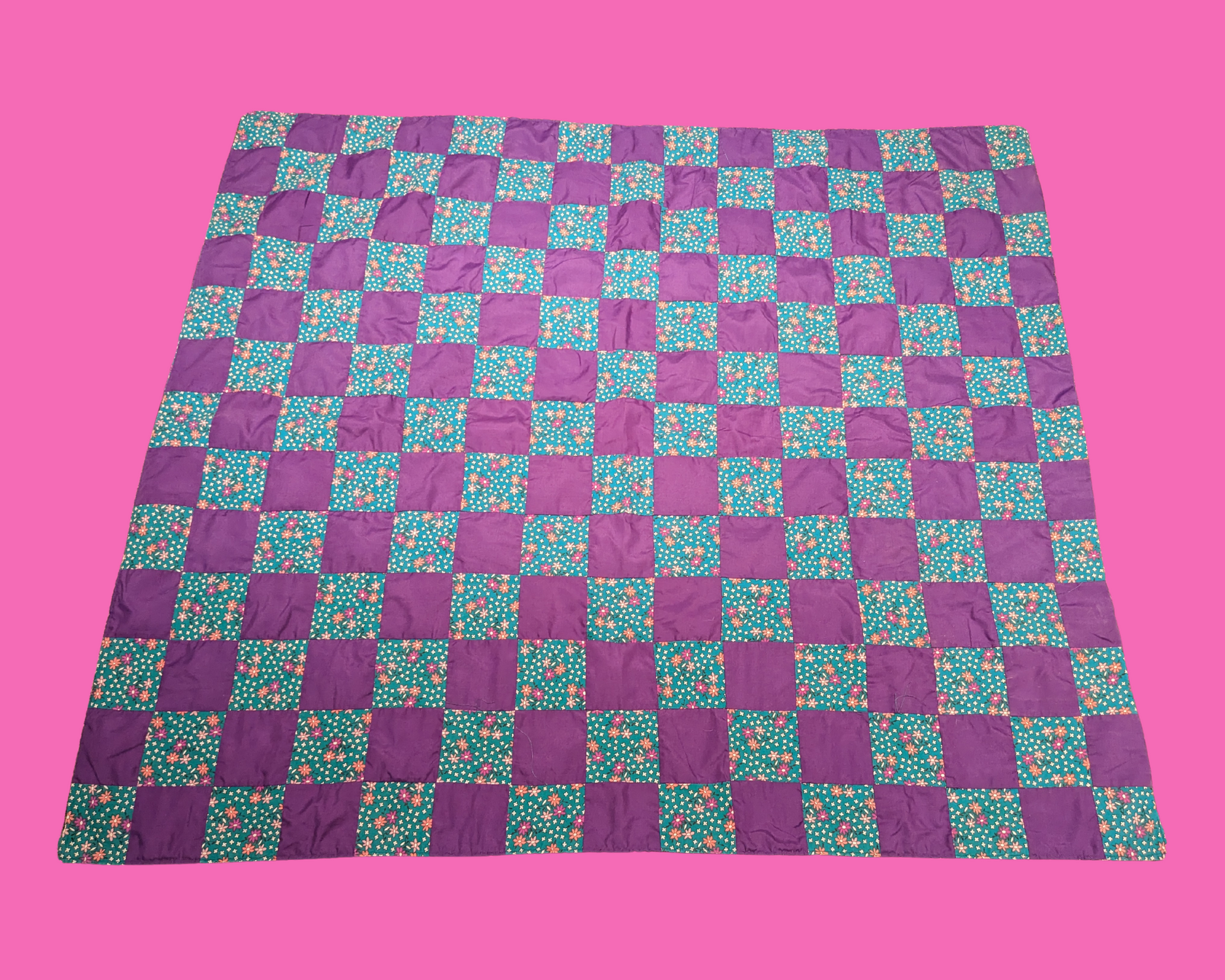 • Couverture en crochet acrylique vert, jaune et blanc vintage des années 1960
