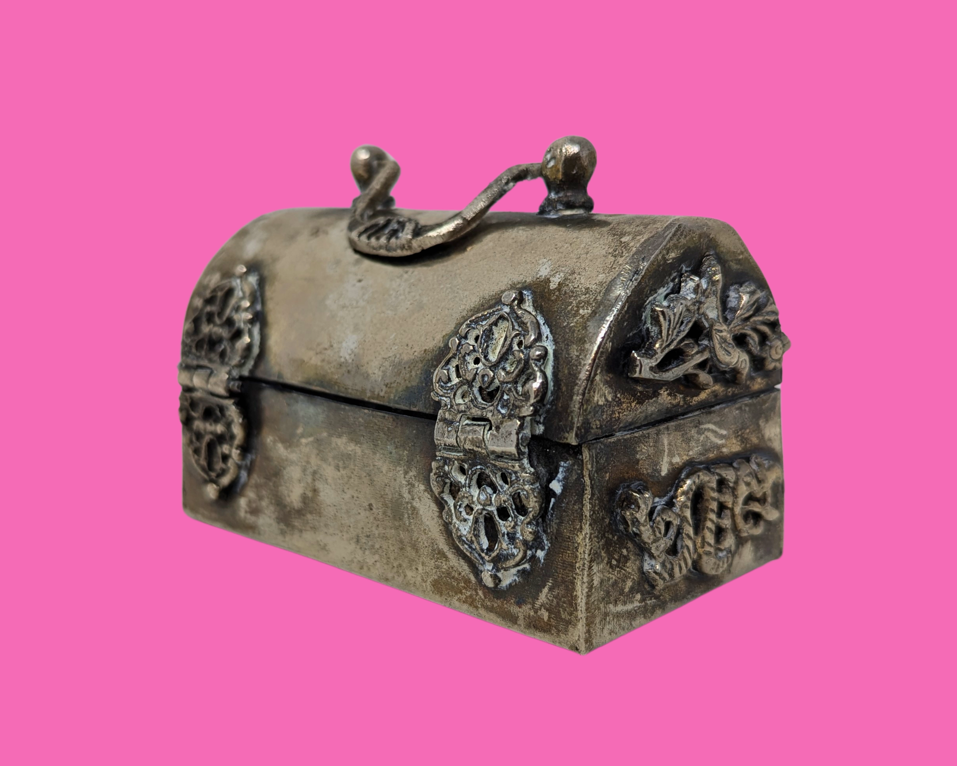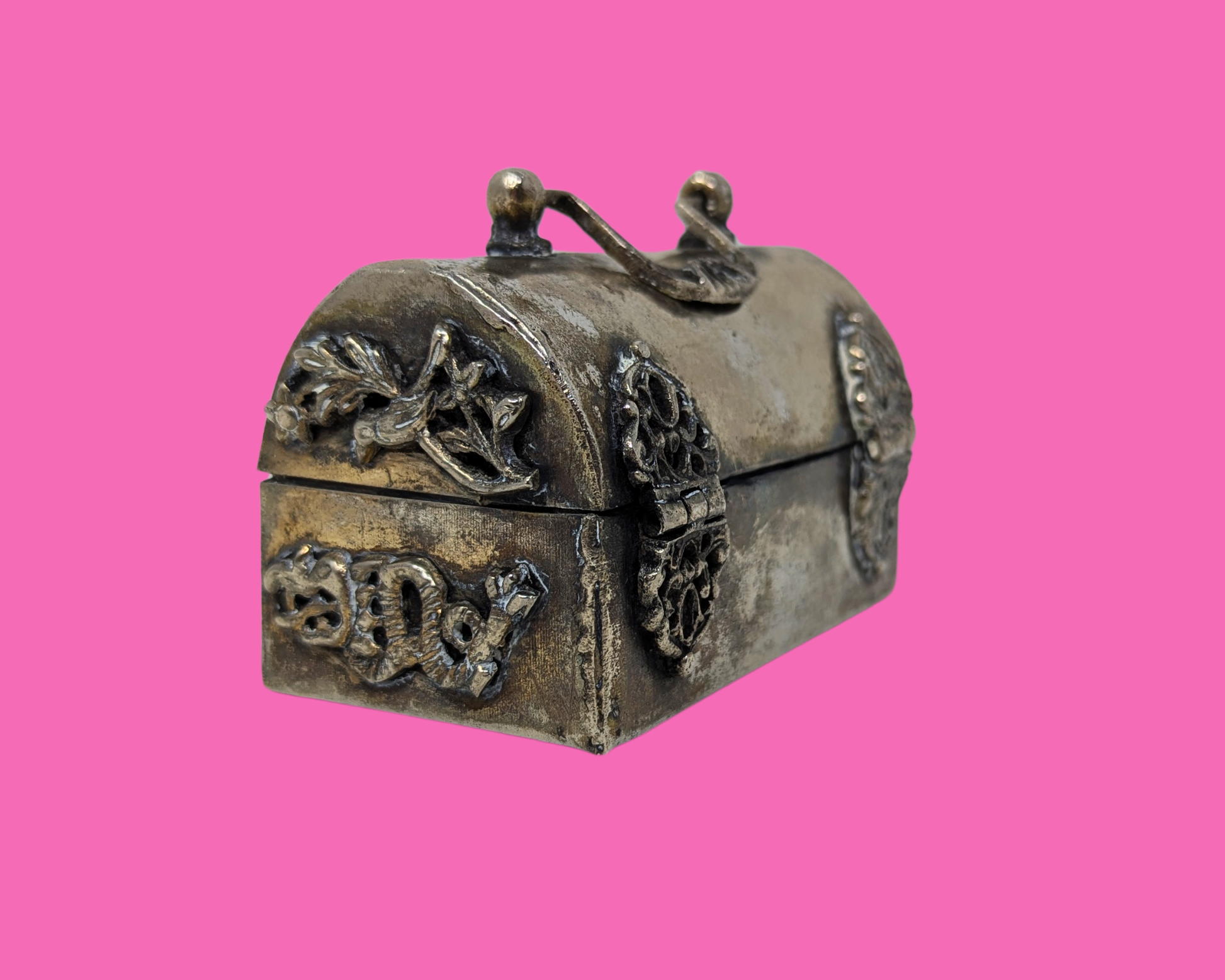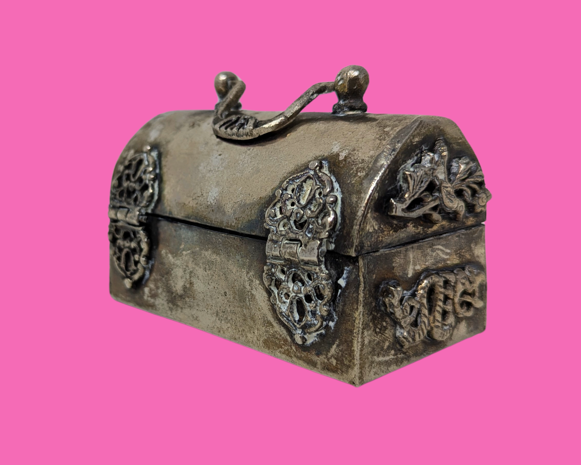 • Petit coffre en métal vintage des années 1970, avec intérieur en velours