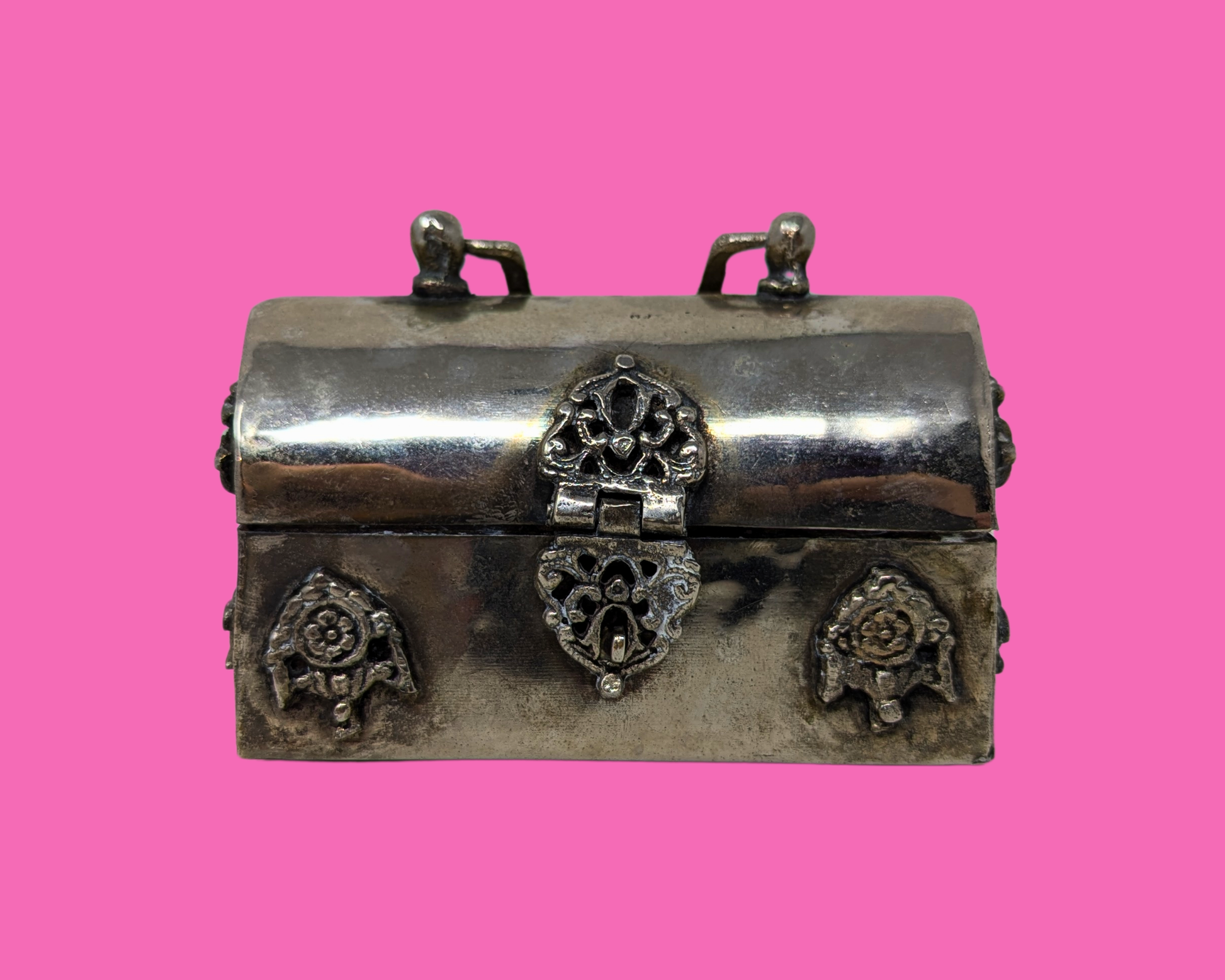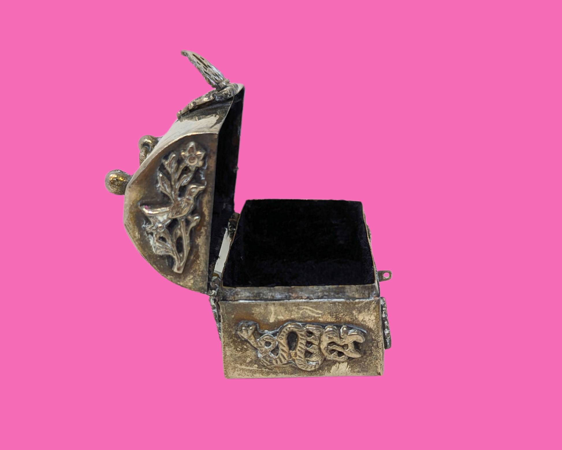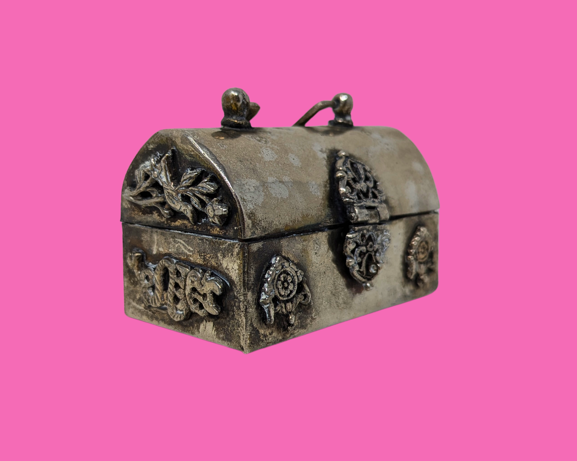 • Petit coffre en métal vintage des années 1970, avec intérieur en velours