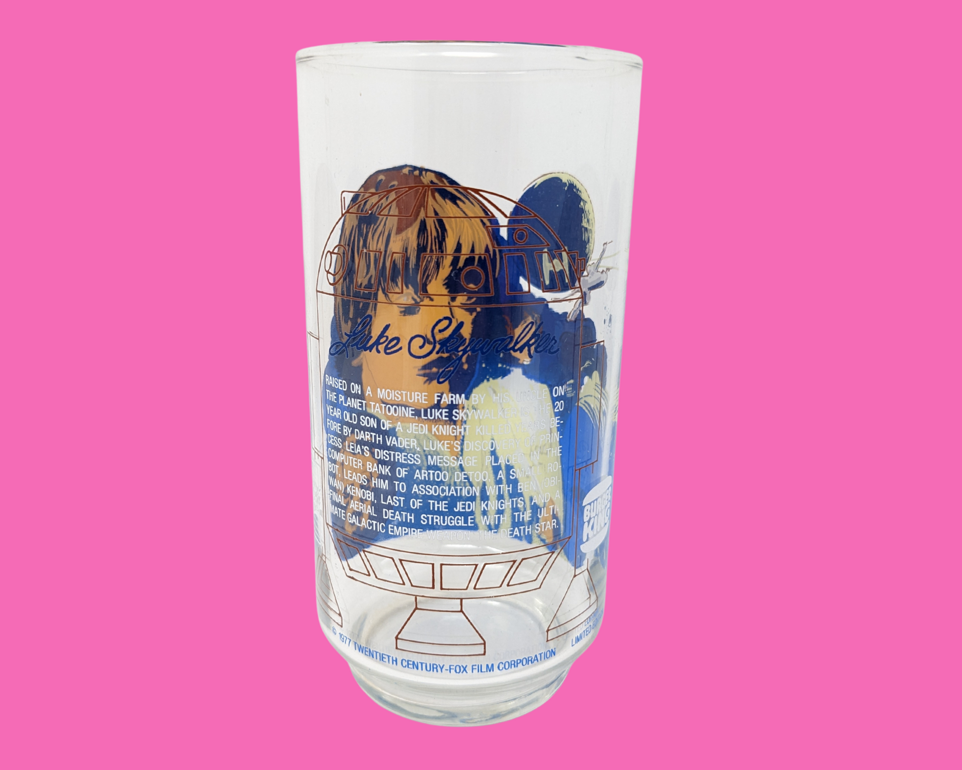 Vintage 1977 Burger King, Star Wars Collector, Verre Luke Skywalker
