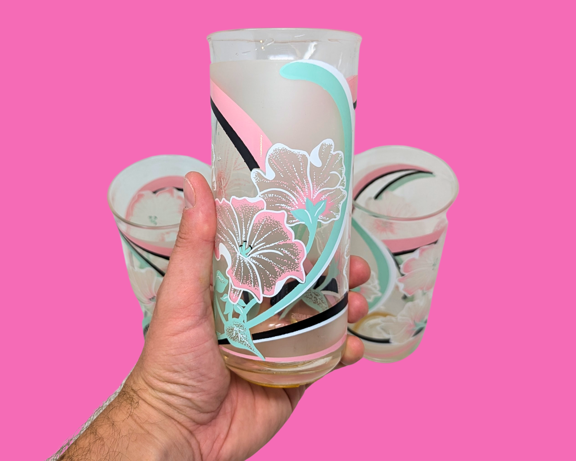 • Ensemble de 4 verres en acrylique vintage des années 1970 à motif floral par Serve Mates