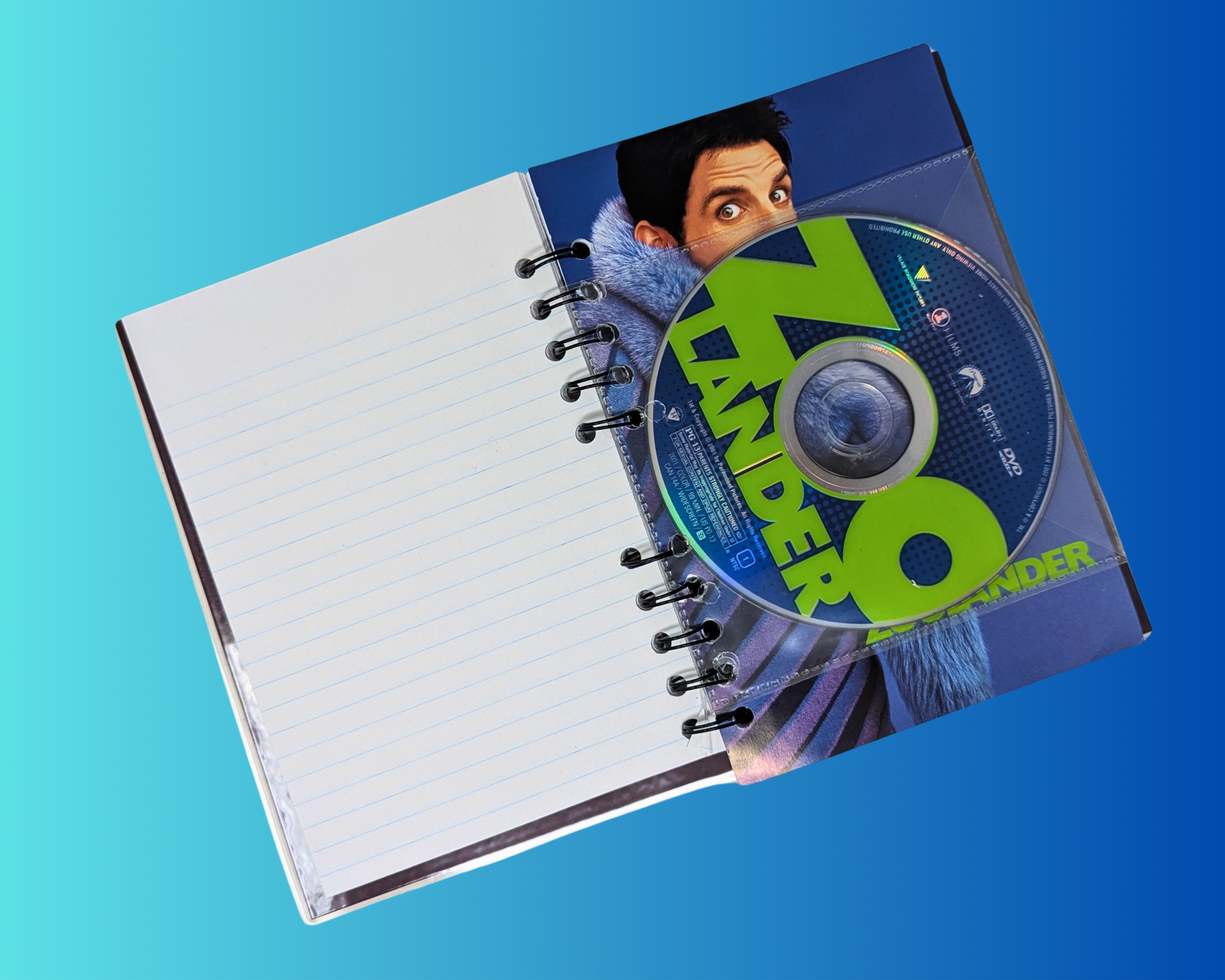 • Carnet de film DVD Zoolander fabriqué à partir d'une feuille de DVD vintage recyclée.