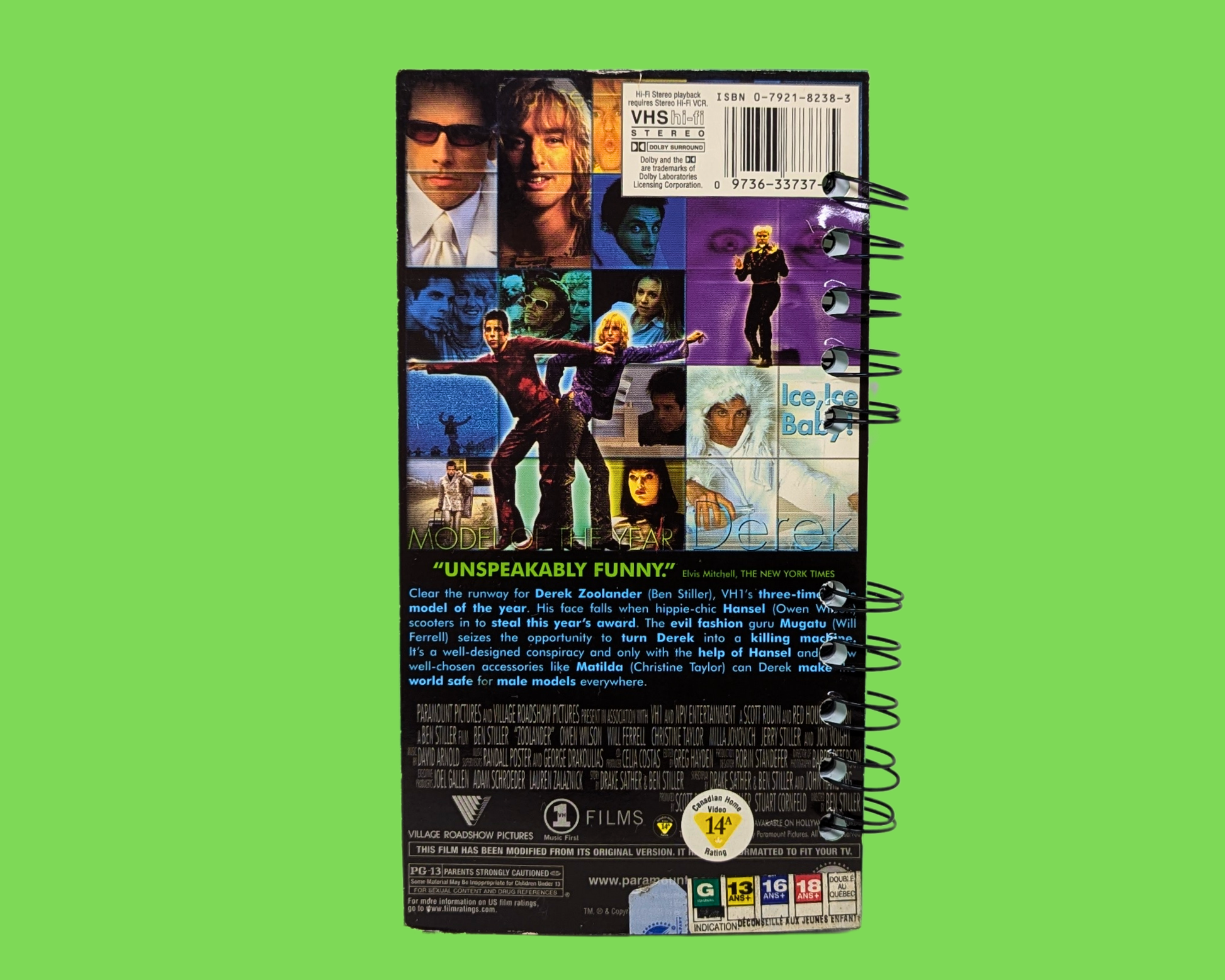 • Carnet de notes de films Zoolander VHS fabriqué à partir d'une boîte VHS vintage recyclée.