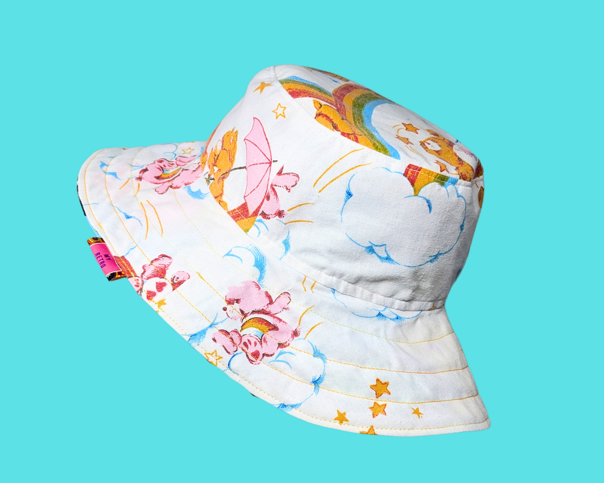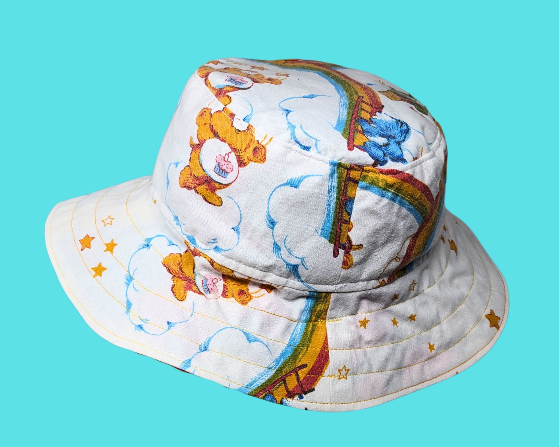 Handmade and Upcycled Vintage 1980's Carebears Bedsheet Reversible Bucket Hat