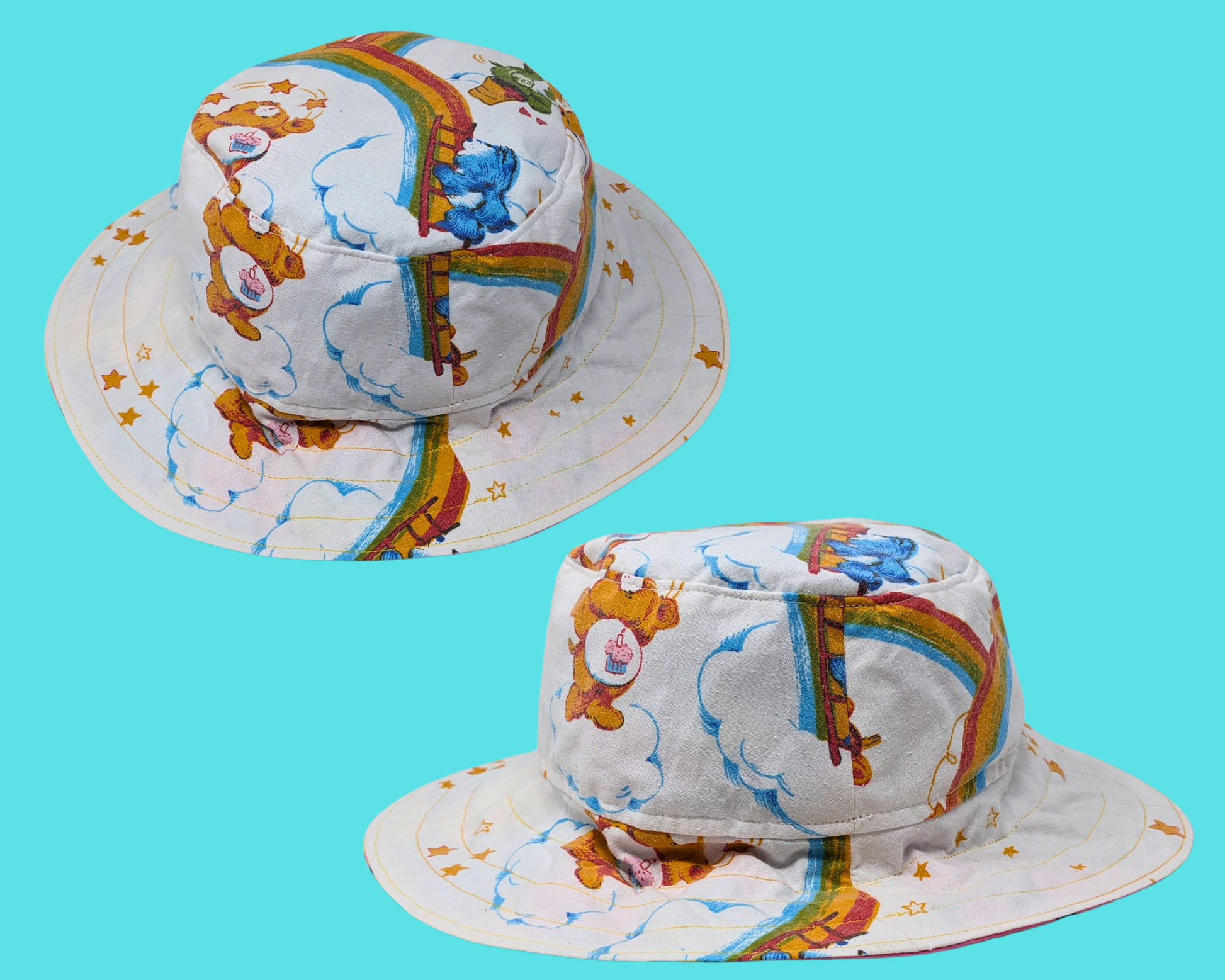 • Handmade and Upcycled Vintage 1980's Carebears Bedsheet Reversible Bucket Hat