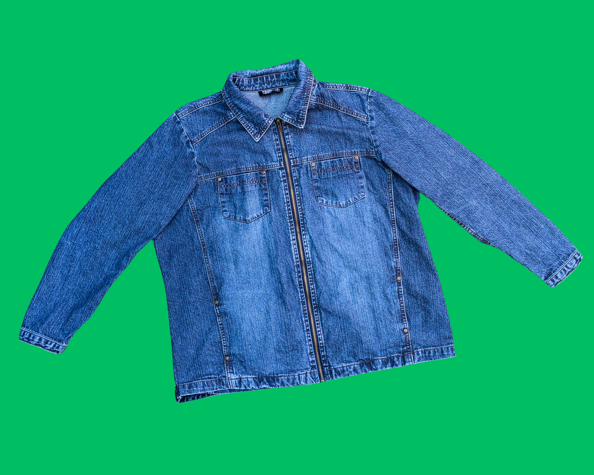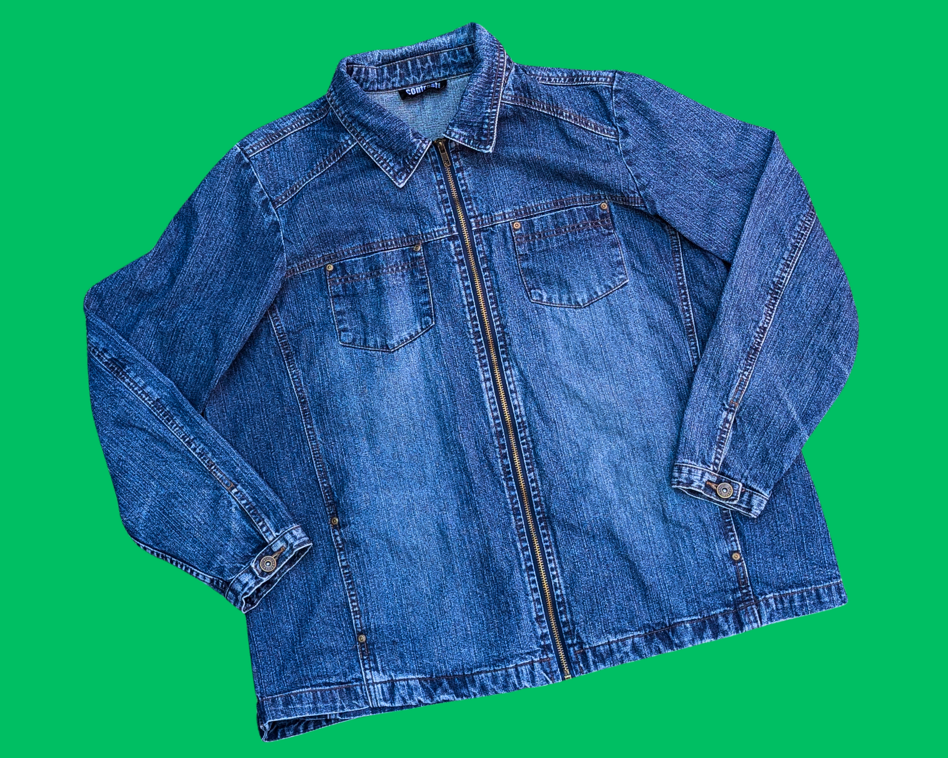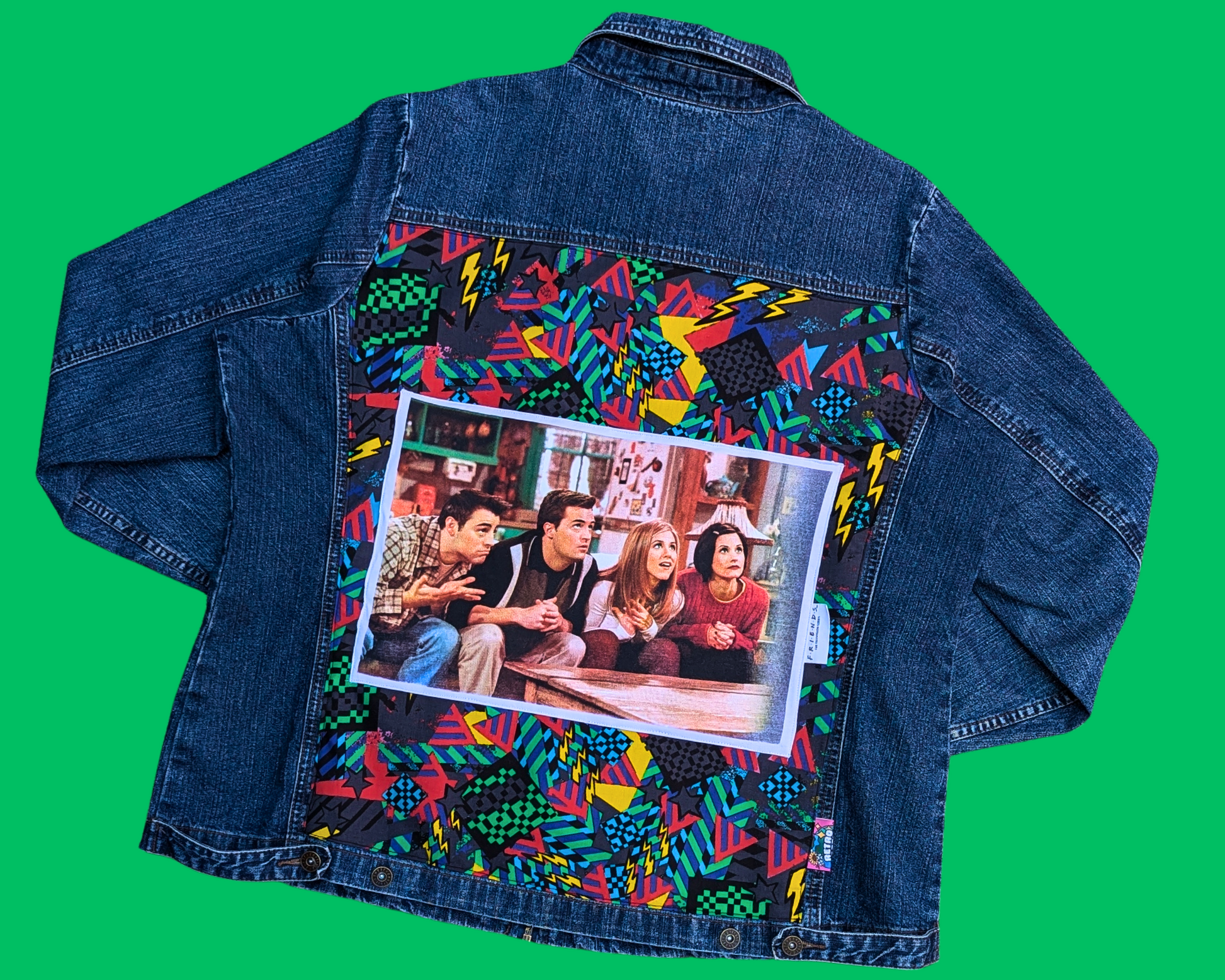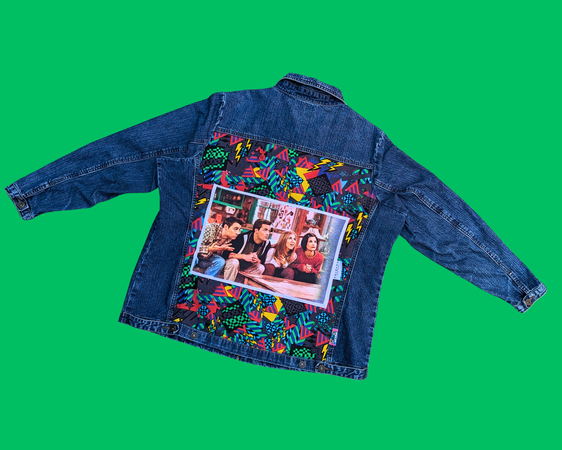 • Handmade, Upcycled Friends T-Shirt Denim Jacket Size L