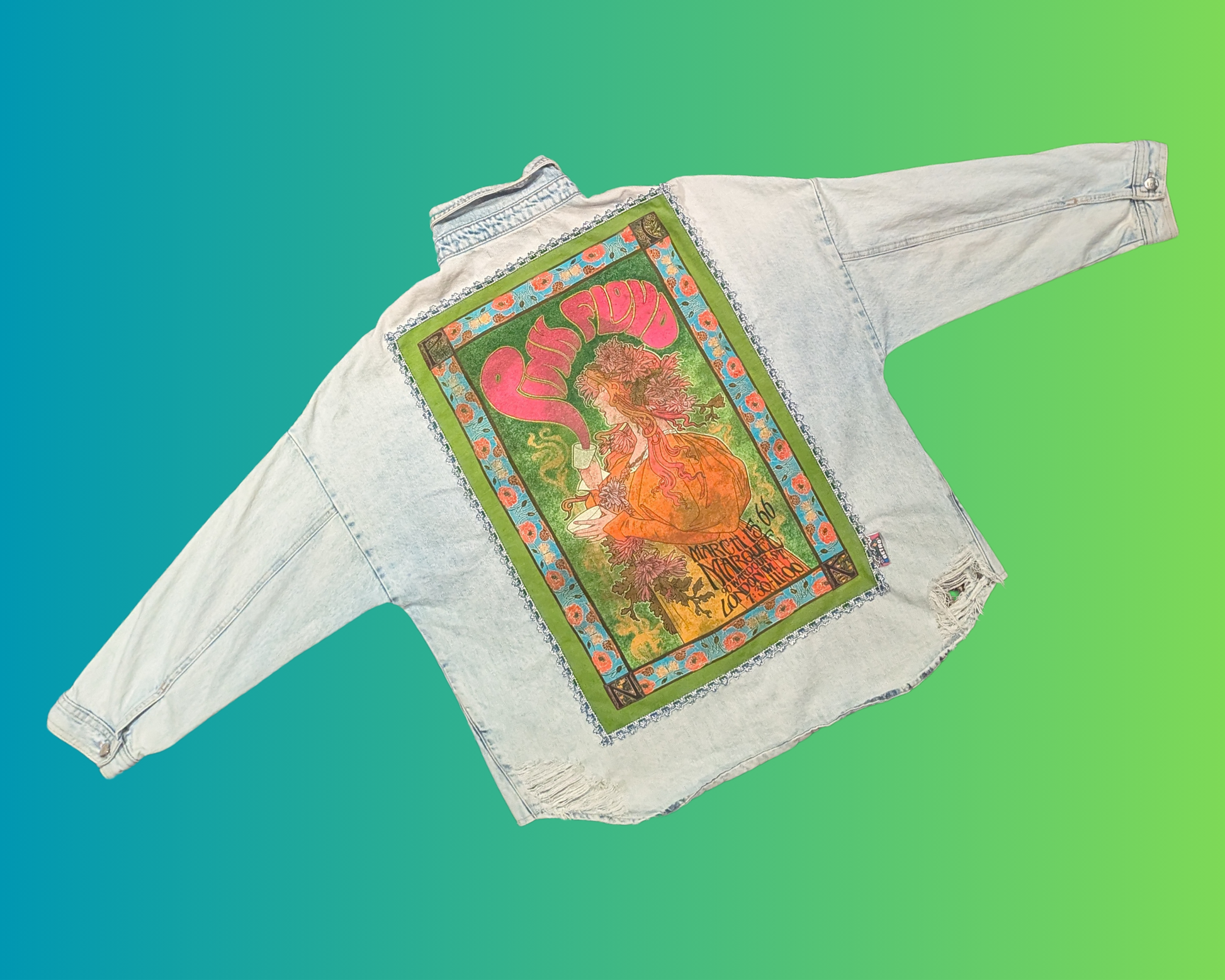 • Handmade, Upcycled Pink Floyd 1966 Denim Jacket Size XL