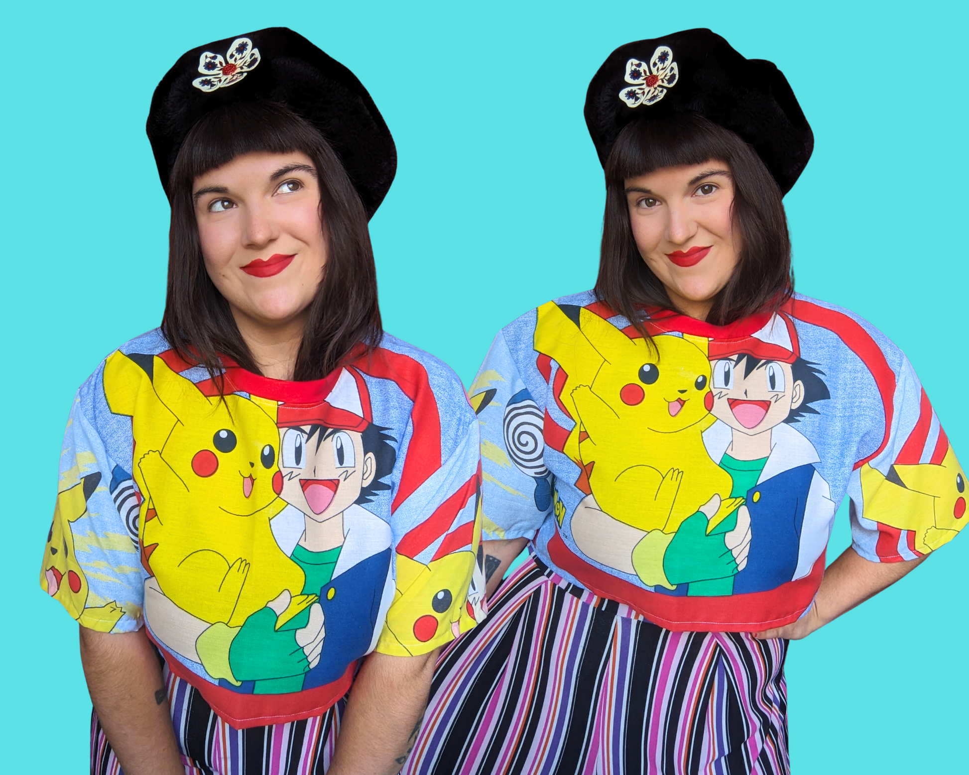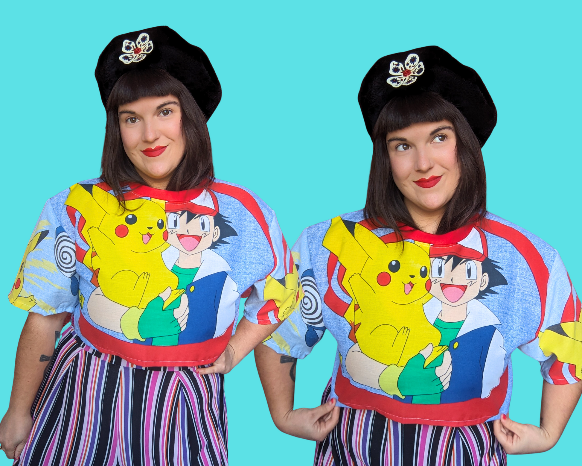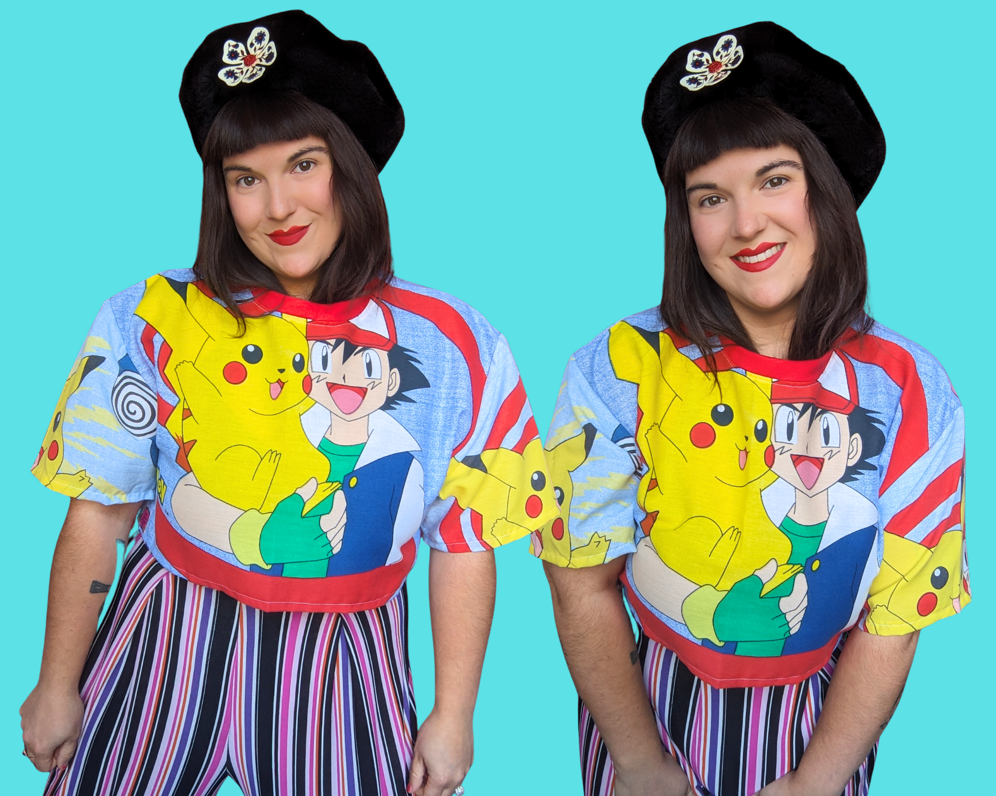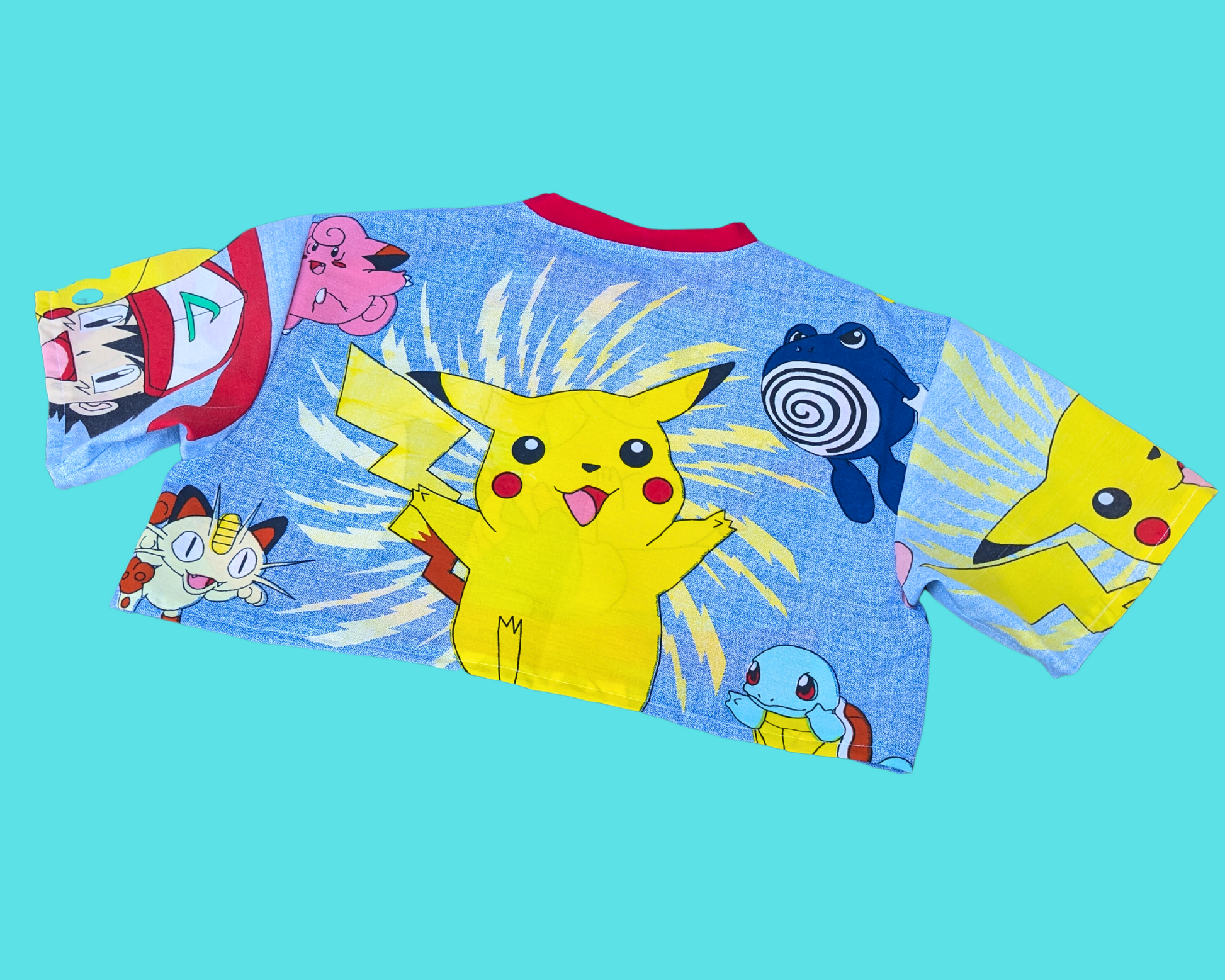 Handmade, Upcycled Pokemon Pillow Cases Crop Top Fits Size S to XL