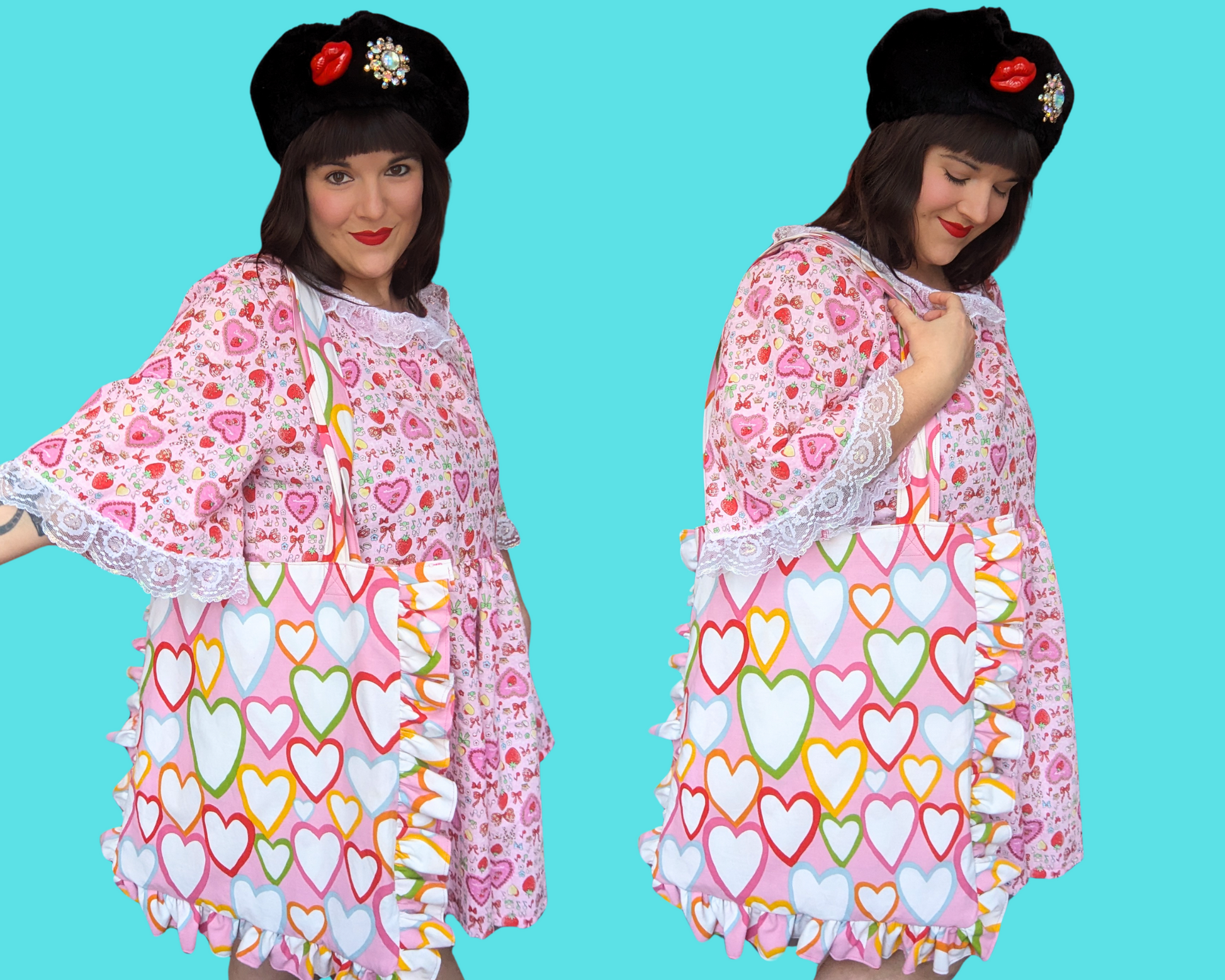 Handmade, Upcycled Rainbow Hearts Tote Bag<br data-mce-fragment="1">