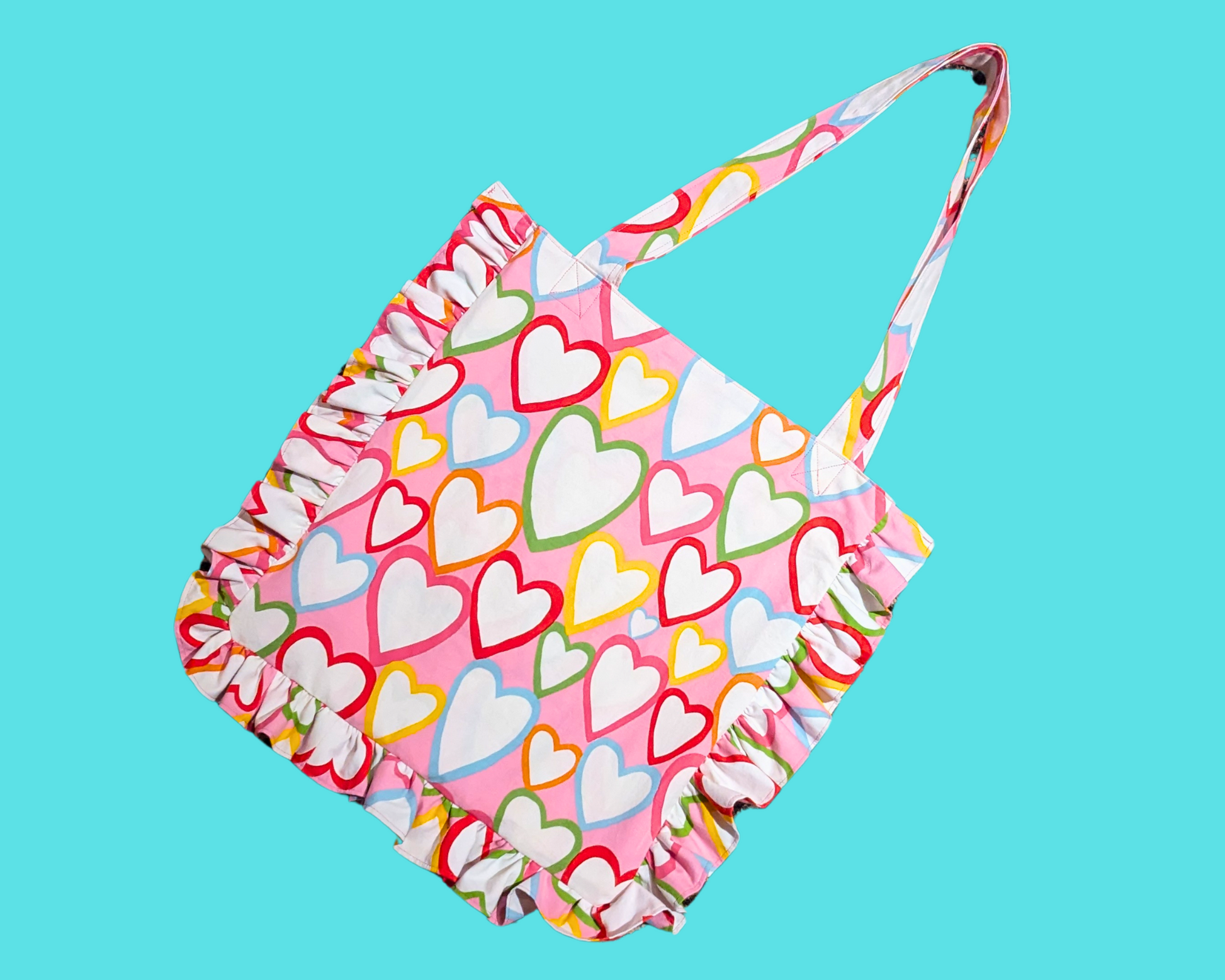 • Handmade, Upcycled Rainbow Hearts Tote Bag