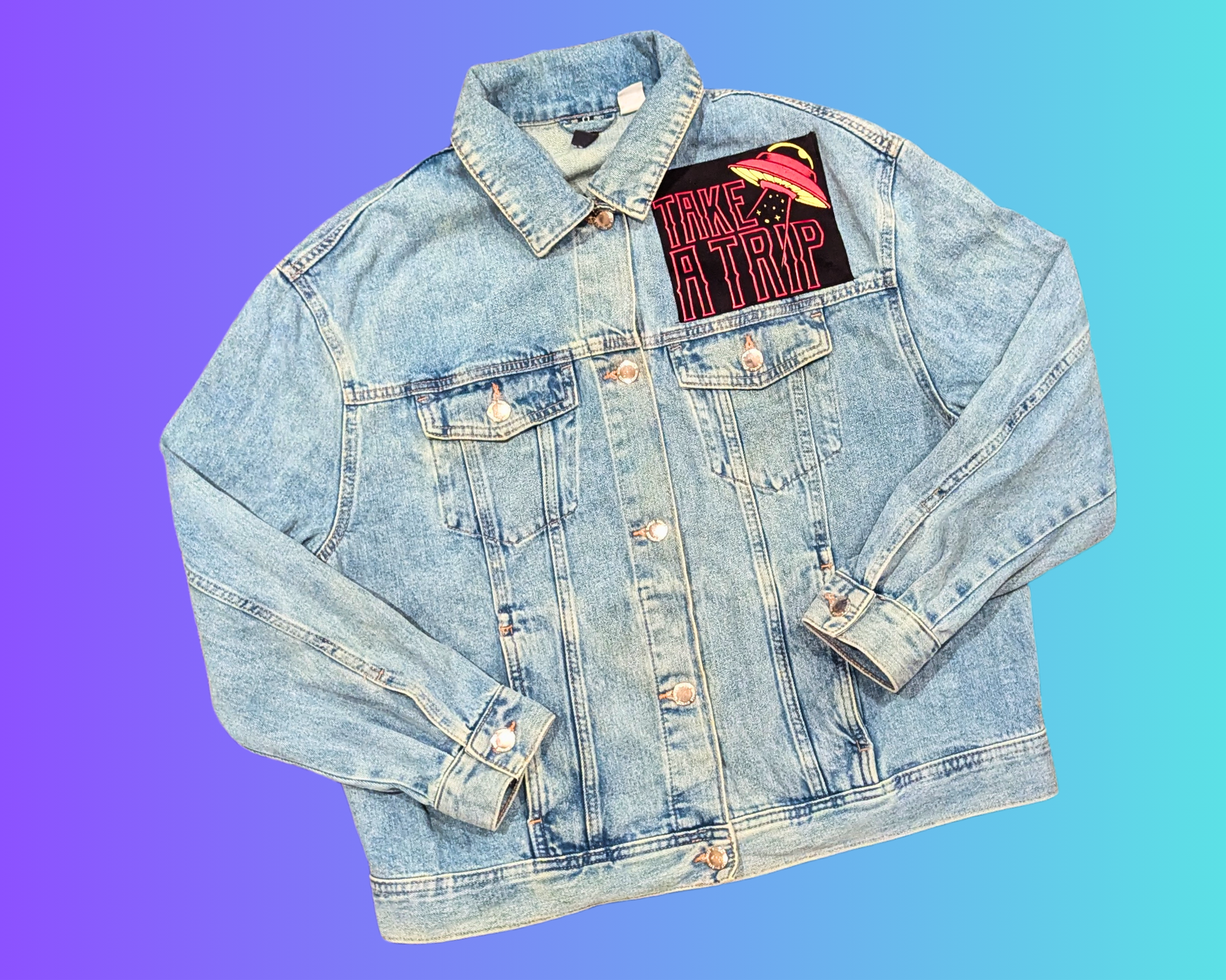 Handmade, Upcycled Take a Trip, Assholes Live Forever Denim Jacket Size M