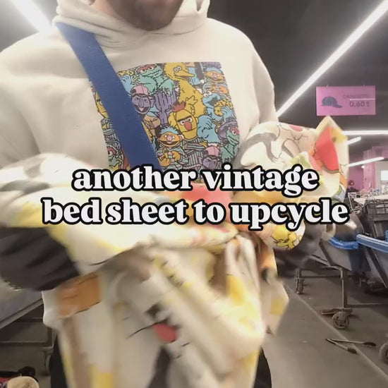 Please consider that these t-shirts are handmade and made out of vintage fabric or bed sheets. Imperfections are to be expected. The bigger stains, holes will be mentioned below. Expect some smaller flaws that may not be specified, as well as some imperfect stitches. Be careful, do not pull on it too much.