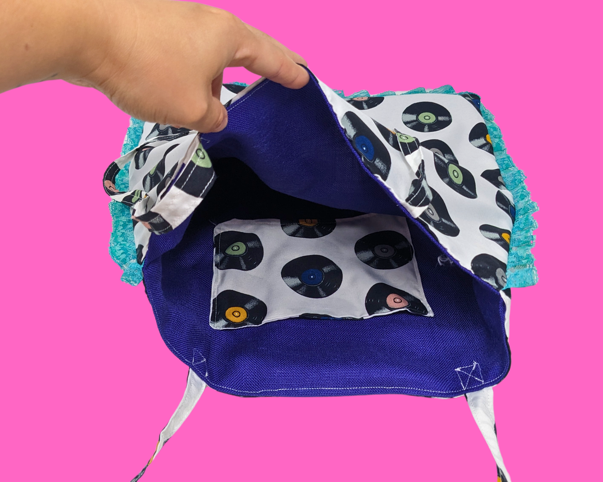 • Handmade, Upcycled Vinyl Records Pillowcase Tote Bag