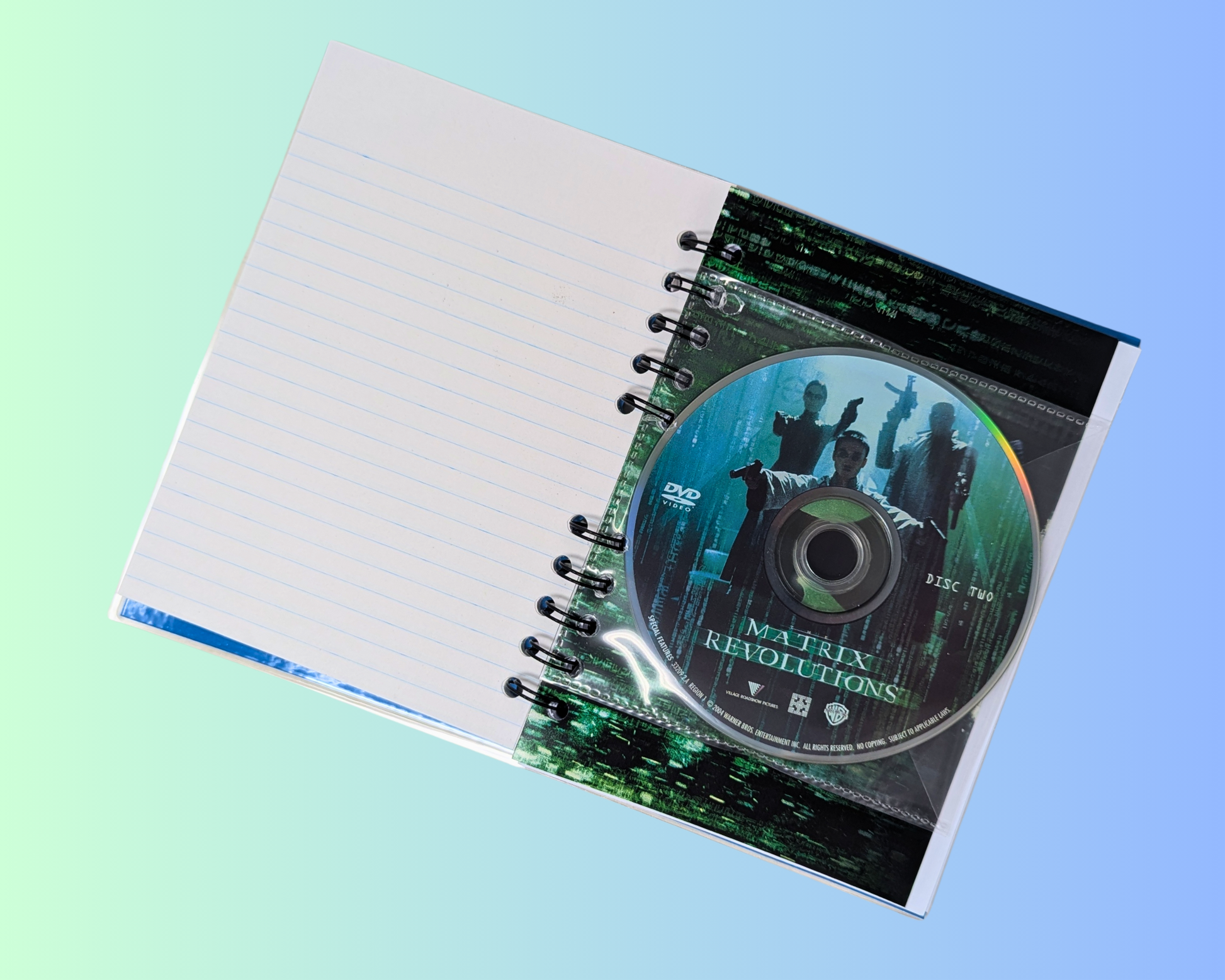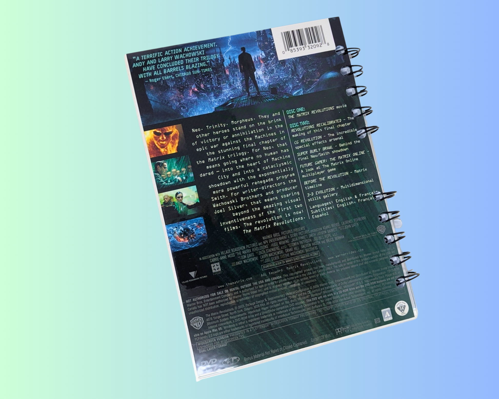 • Matrix Revolutions DVD Movie Notebook made from a vintage, upcycled DVD sheet.
