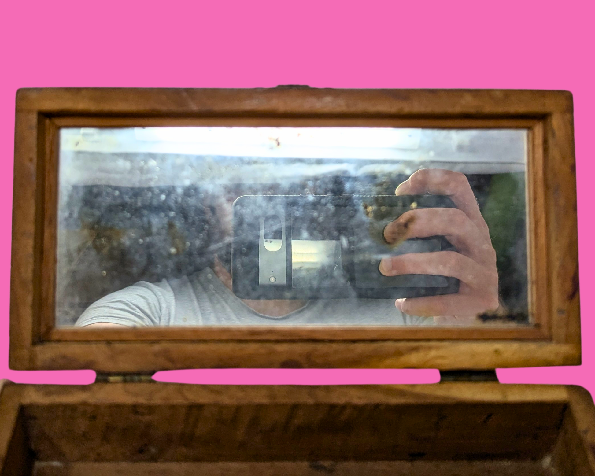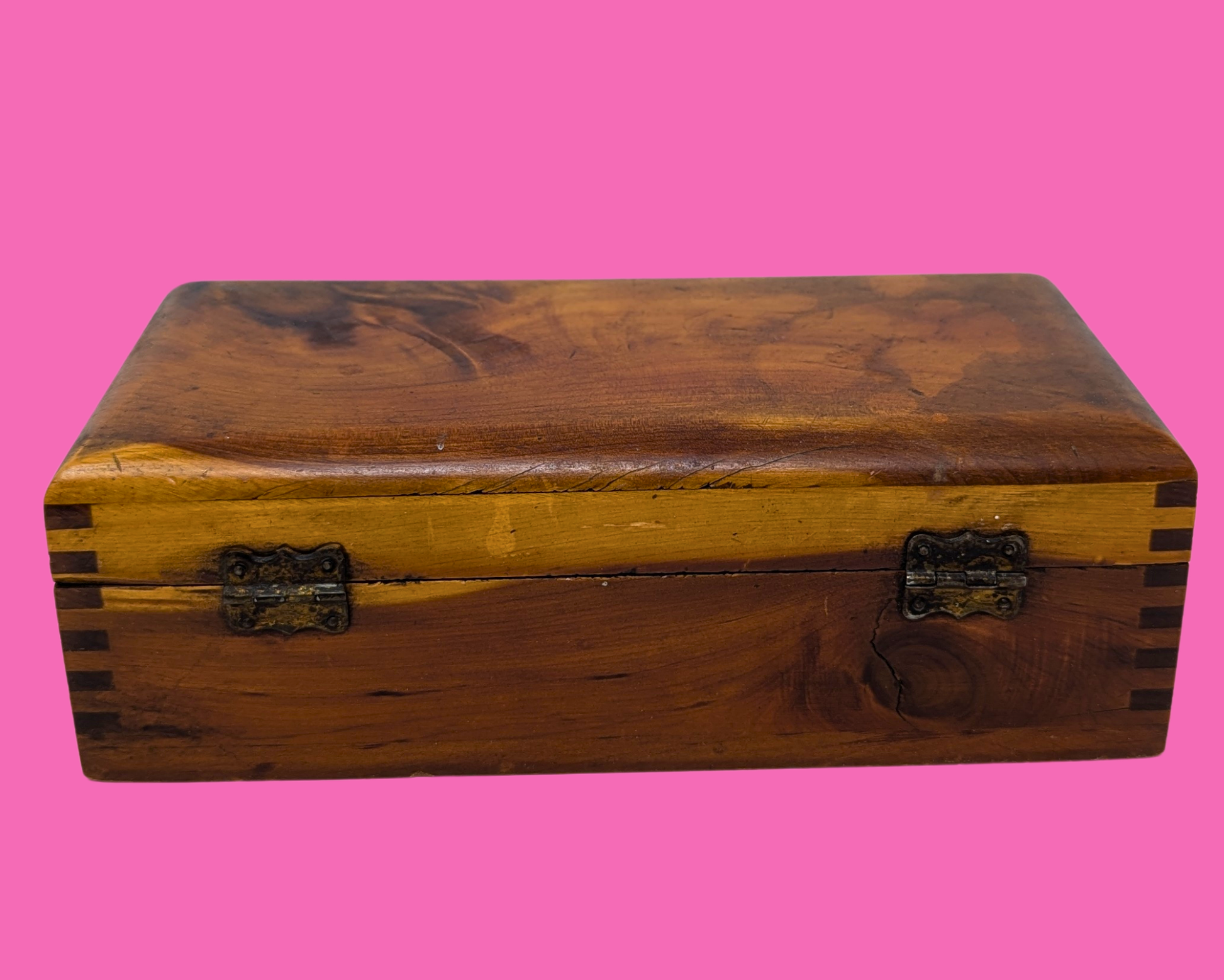 • Vintage 1960's Wooden Box For Jewelry With Mirror