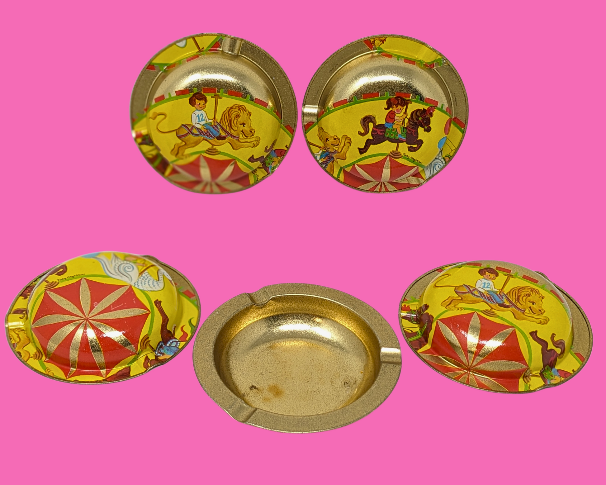 • Vintage 1970's Set of 5 Metal, Groovy Ashtray