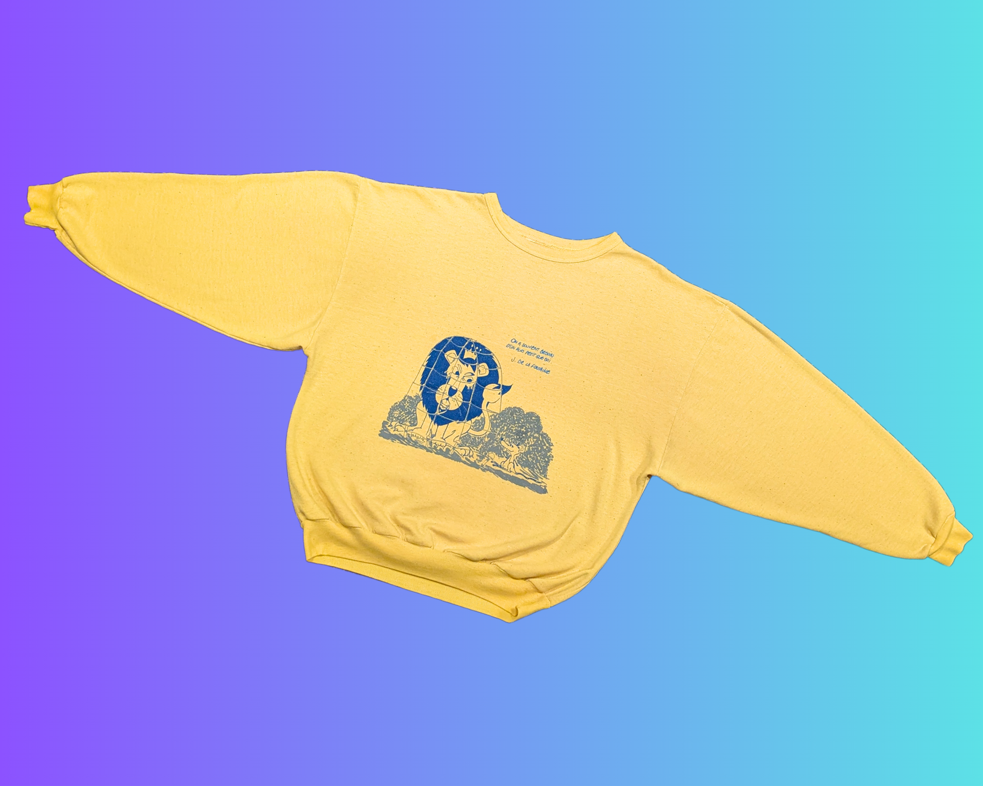• Vintage 1970's Yellow Fable de la Fontaine, Le Lion et La Souris, Crewneck Size S