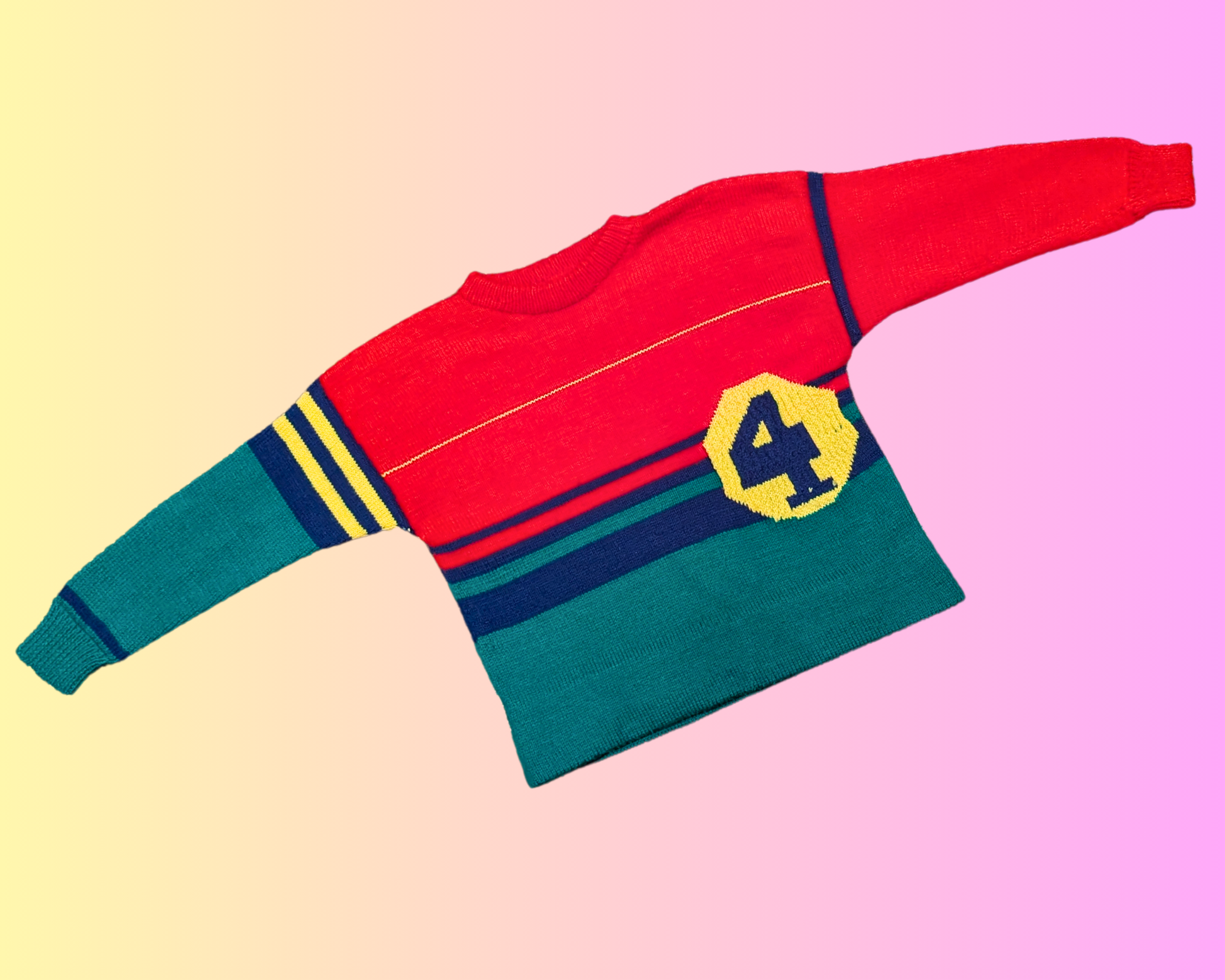 • Vintage 1980's Red, Green and Yellow Wool Knit Sweater Size S