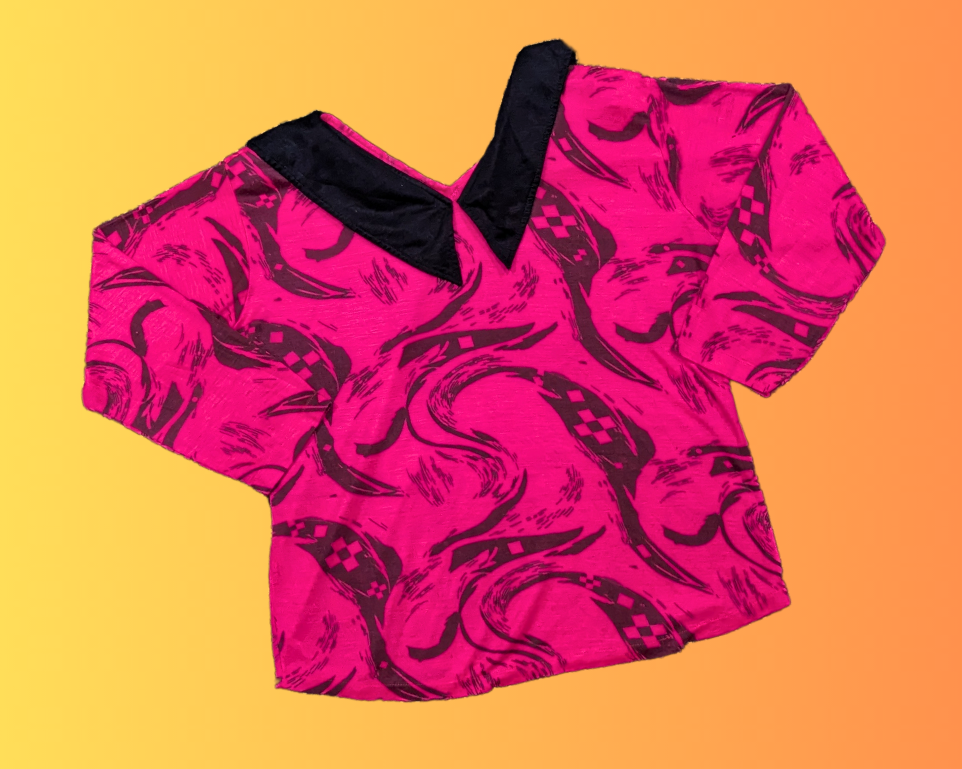 • Vintage 1980's Warm Pink, Black Collar, Mid-Sleeves Shirt Size S