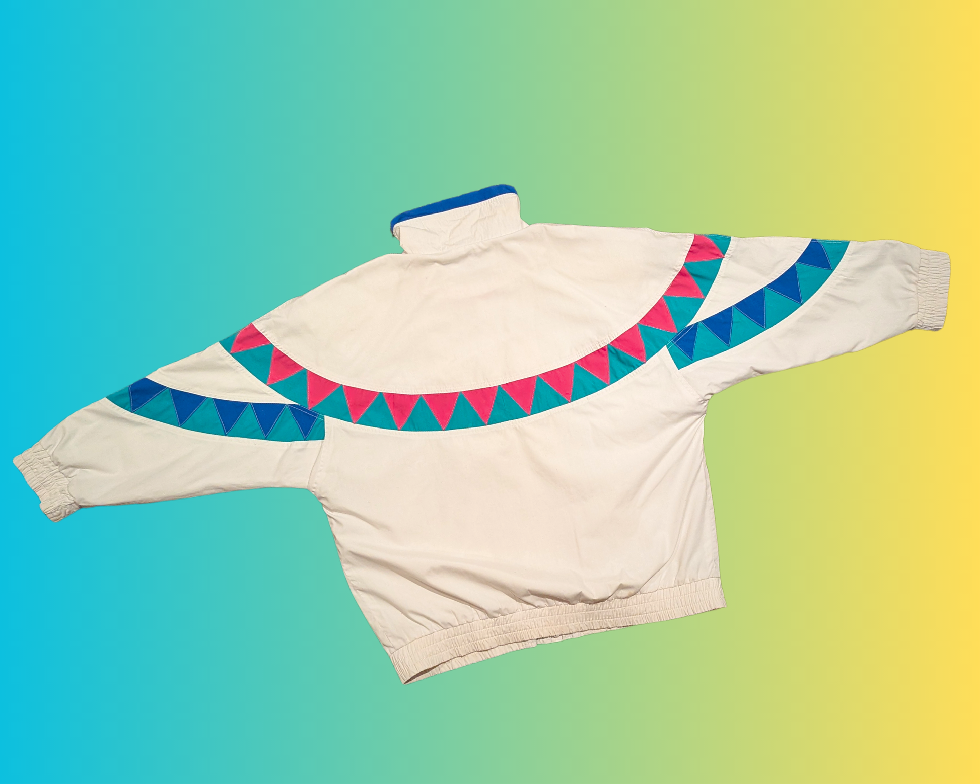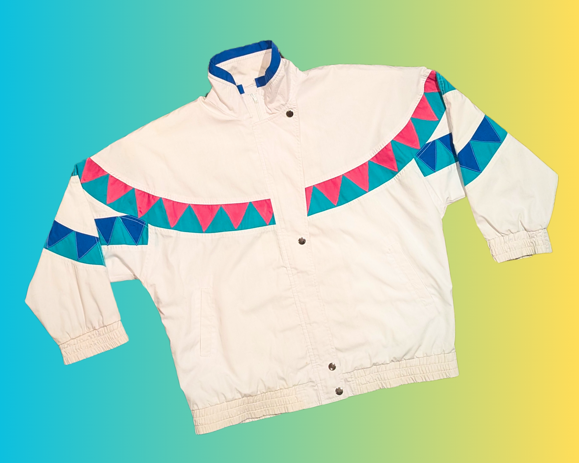 • Vintage 1980's White, Pink and Turquoise Funky Light Jacket Size M
