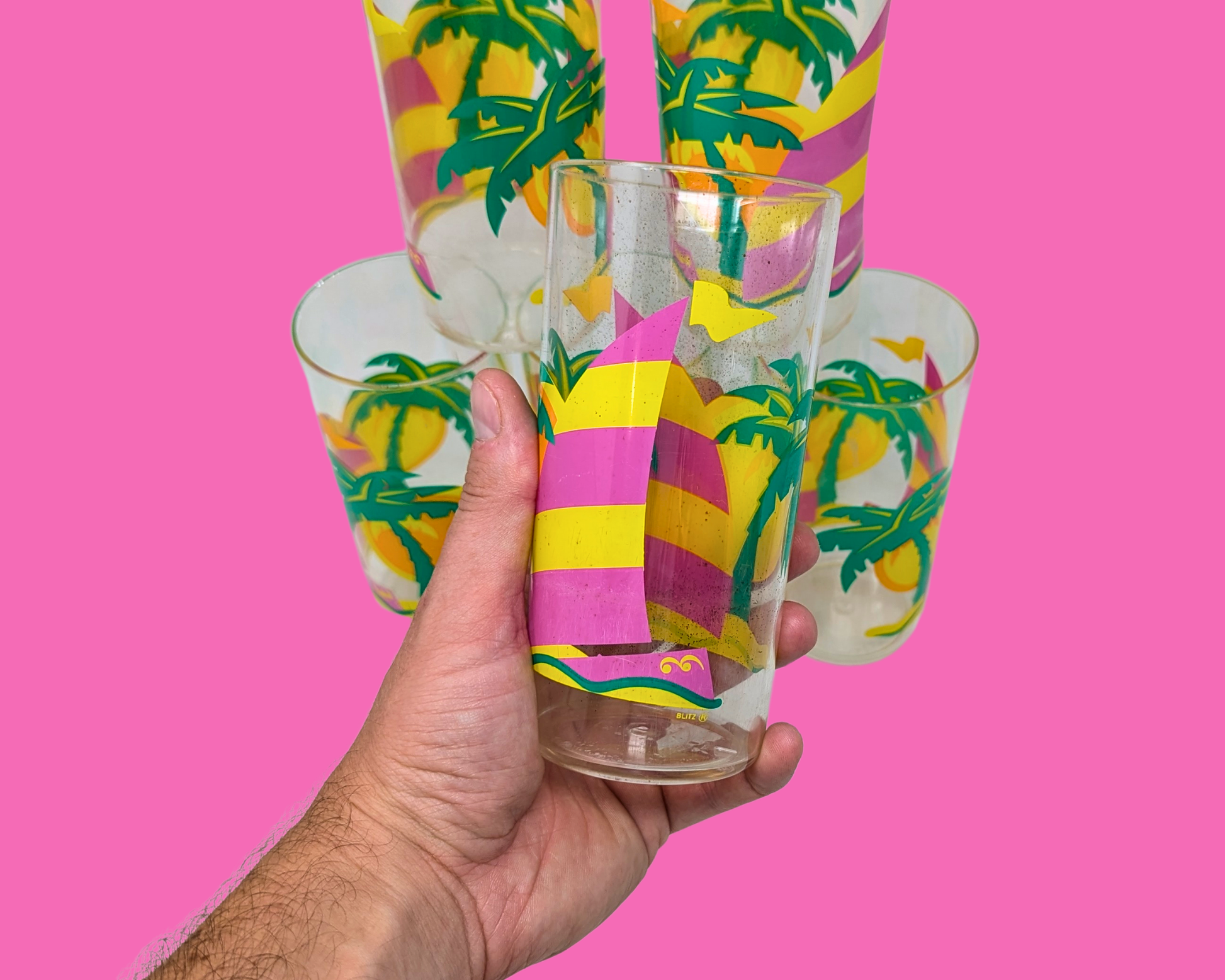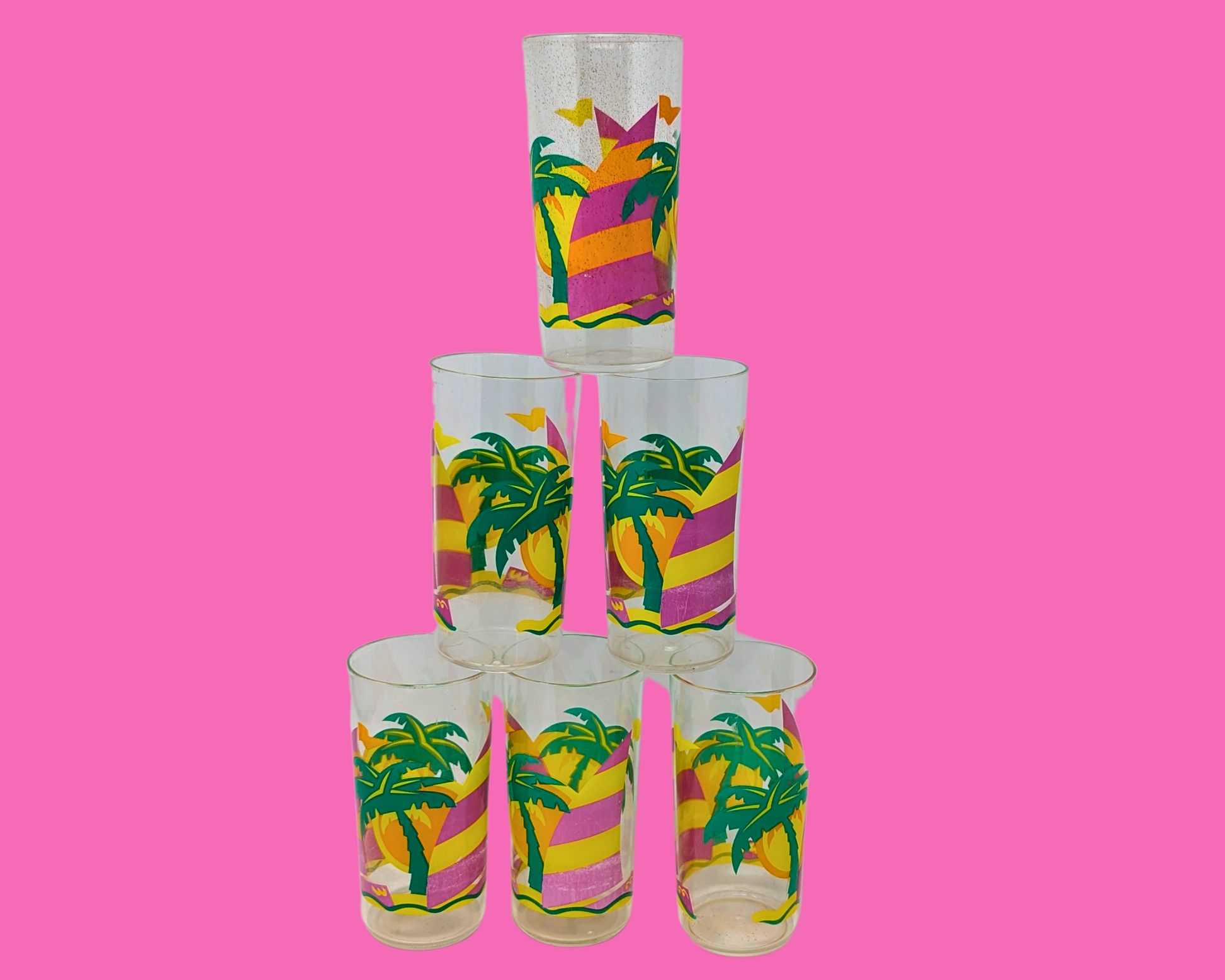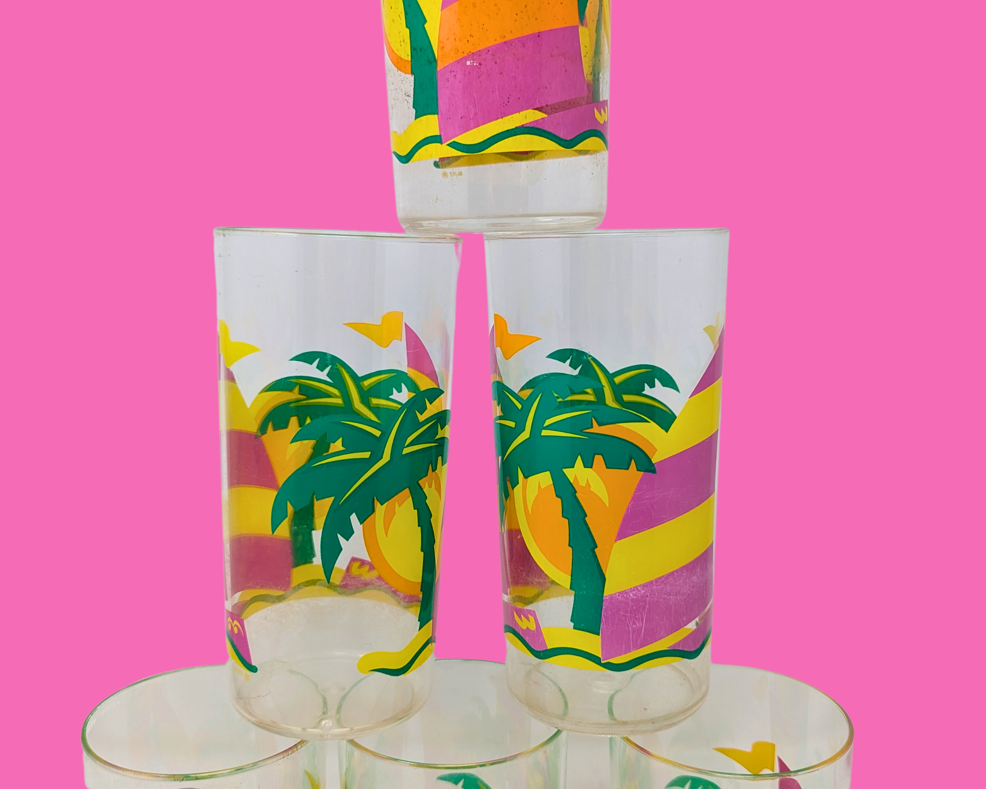 • Vintage 1990's Exotic Design, Kitsch, 6 Plastic Glasses