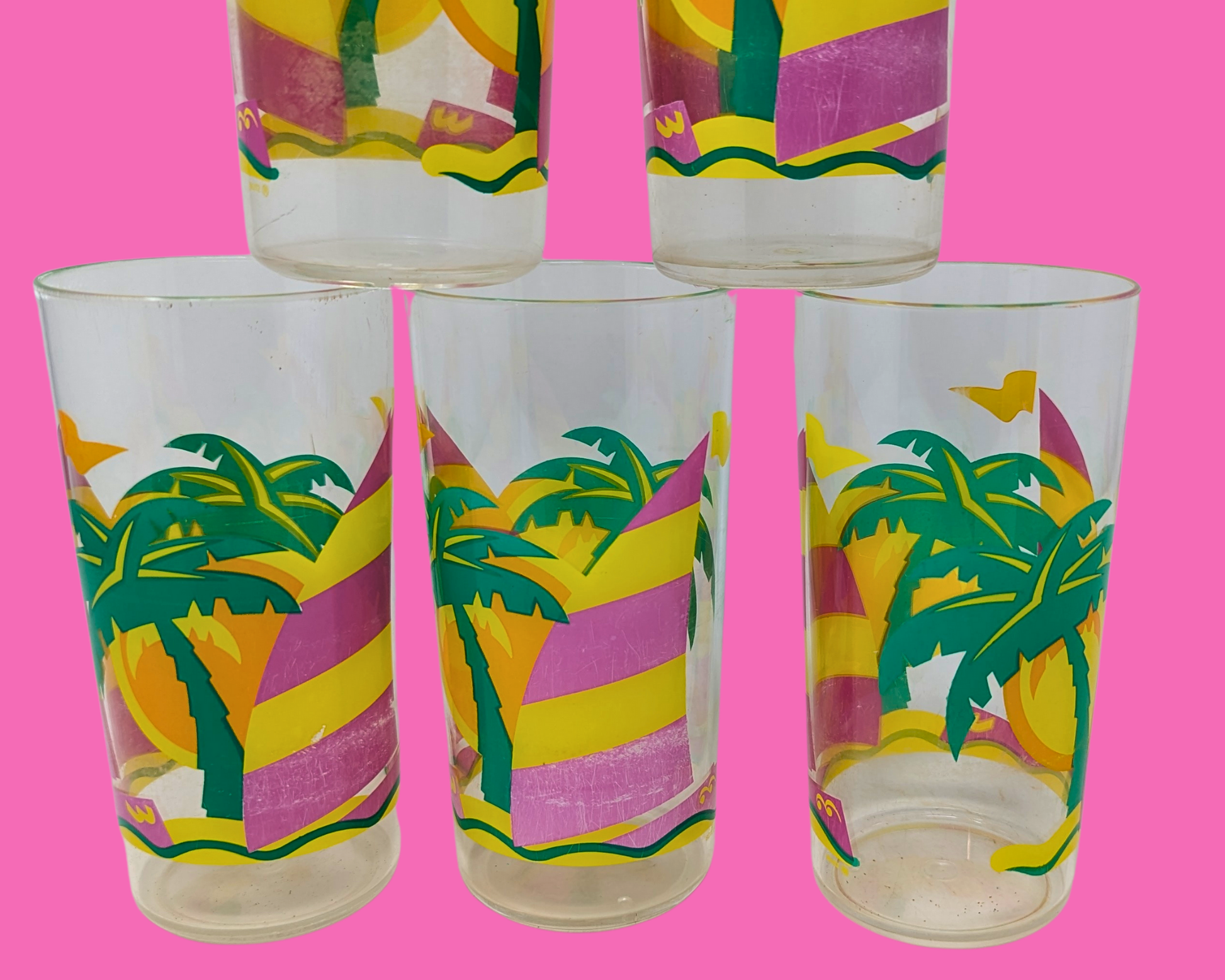 Vintage 1990's Exotic Design, Kitsch, 6 Plastic Glasses