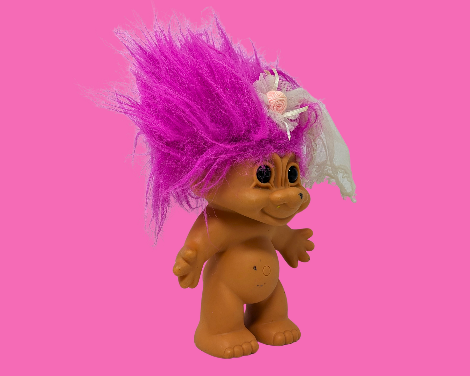 • Vintage 1990's Medium Sized Pink Hair Troll