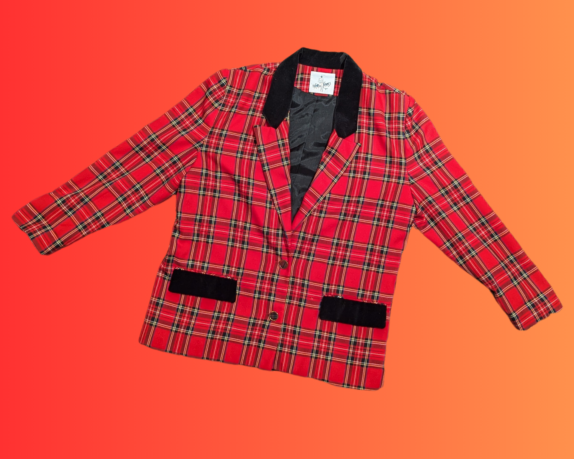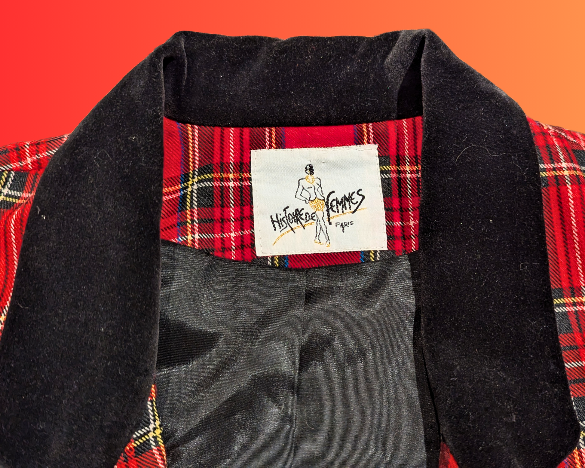• Vintage 1990's Red Plaid Blazer by Histoire de Femmes Paris Size M