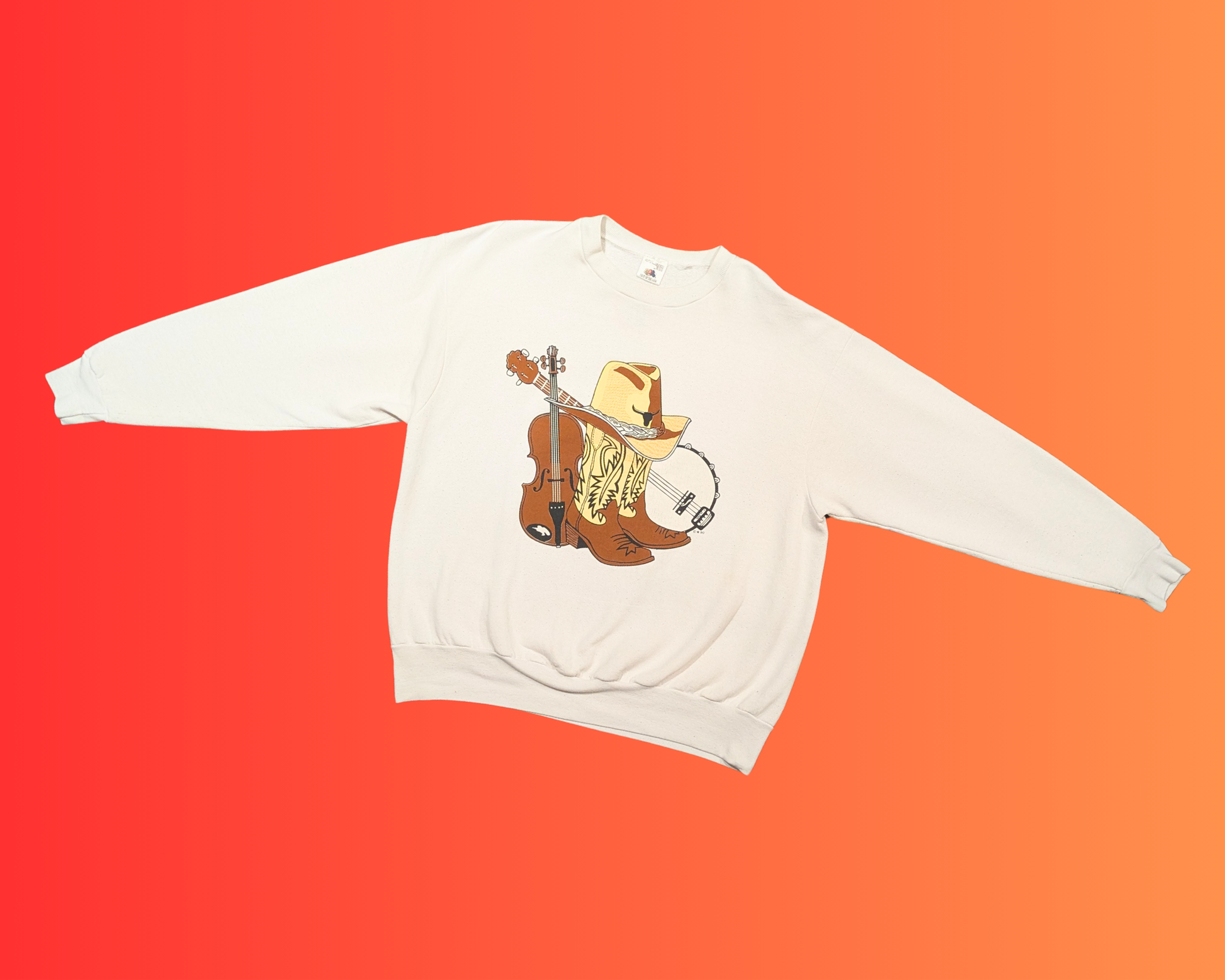 • Vintage 1990's Western, Country, Cowboy Boots and Hat Crewneck Size XL