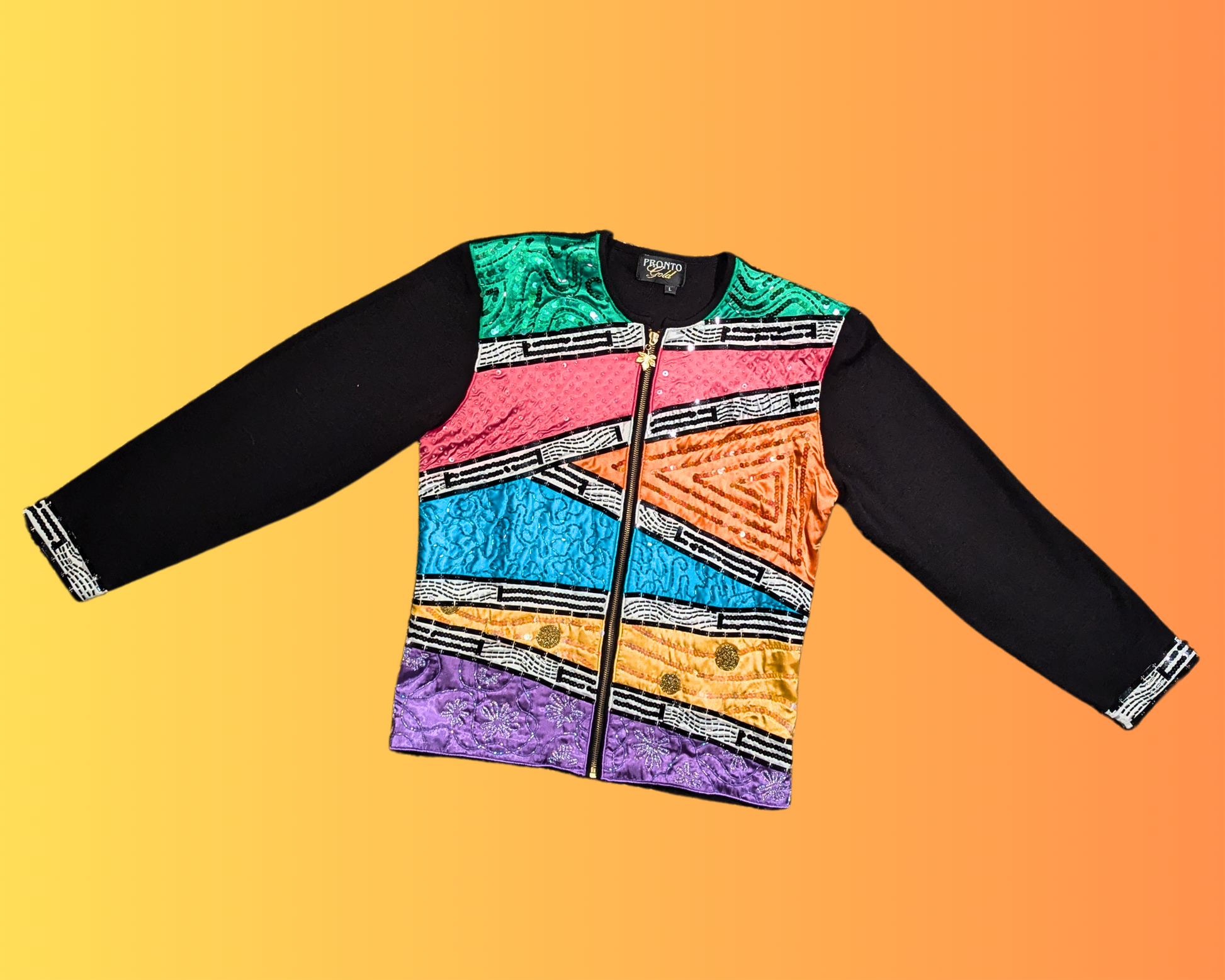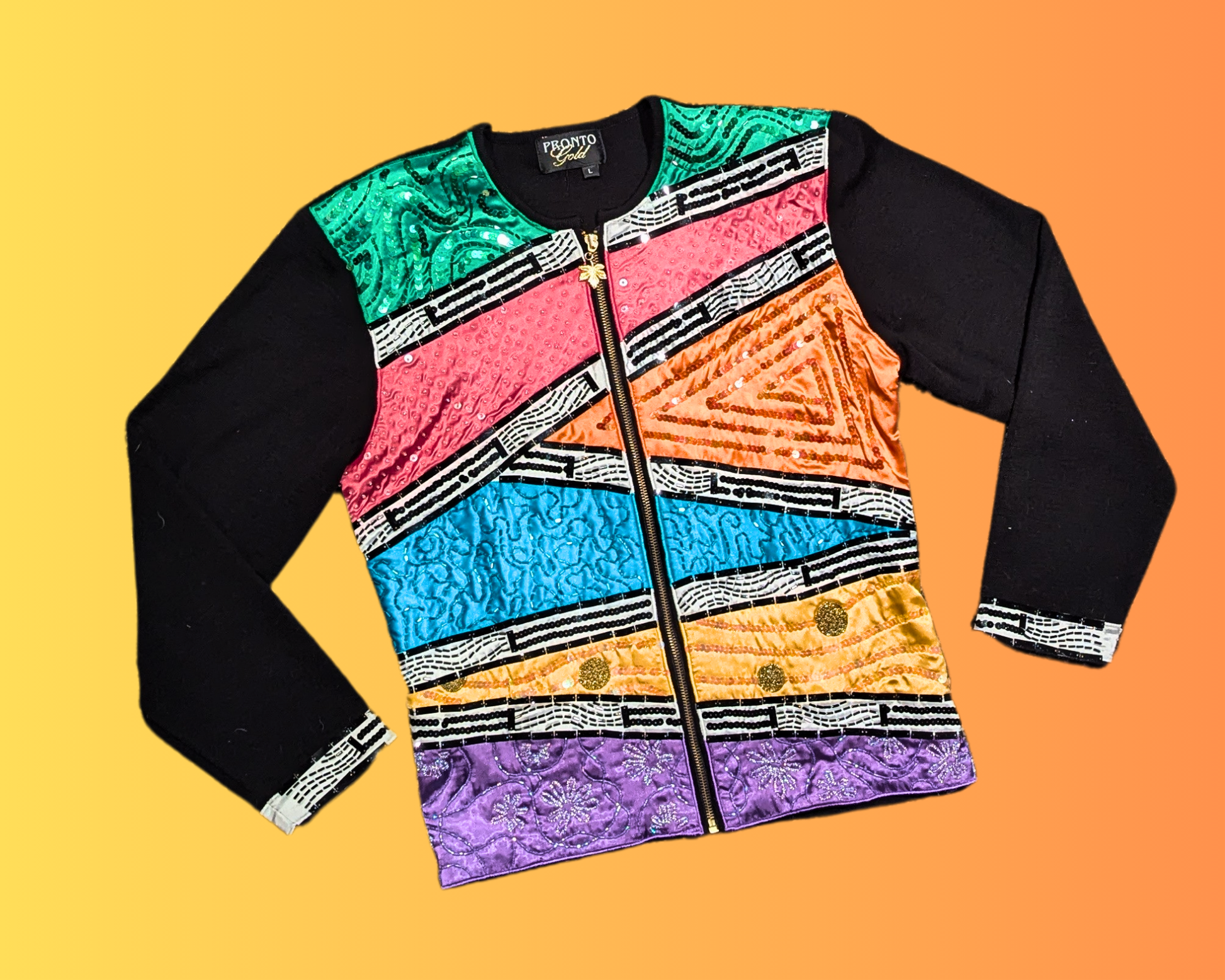 • Y2K Colorful, Sequins and Beads, Black Sleeves Cardigan Size L